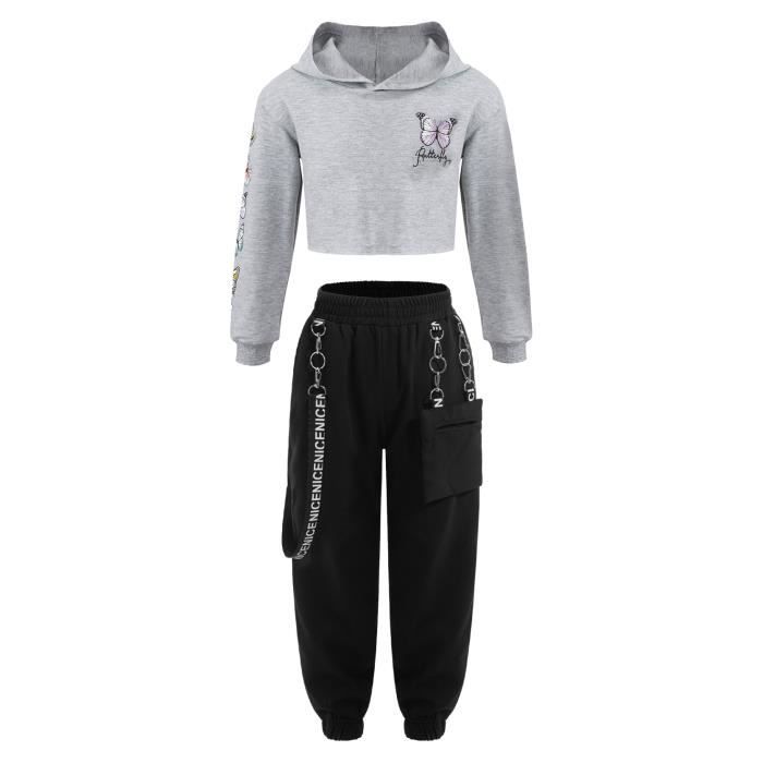 Wow, was für ein cooles Outfit für deine kleine Tänzerin! Dieses iiniim Hip Hop Set besteht aus einem stylischen Sport BH Crop Top und einer trendigen Cargo Hose - perfekt abgestimmt für den modernen Street Dance Look. Das Top hat einen bauchfreien Schnitt mit Rundhalsausschnitt und glänzenden Pailletten, die bei Bühnenauftritten richtig was hermachen! Die Hose sitzt mit elastischem Bund super bequem und gibt volle Bewegungsfreiheit. Das Material ist 98% Polyester und 2% Elastan - dehnbar, atmungsaktiv und perfekt für schweißtreibende Trainingseinheiten. Egal ob Hip Hop, Jazz Dance, Modern Dance oder einfach nur zum Joggen und Yoga - dieses Set ist vielseitig einsetzbar. Von Größe 6 (5-6 Jahre) bis 16 (15-16 Jahre) ist für jedes Alter das Passende dabei. Deine Tochter wird sich damit wie ein echter Dance-Star fühlen! Das Outfit ist nicht nur super praktisch fürs Training, sondern sieht auch so cool aus, dass sie es bestimmt auch in der Freizeit tragen will. Einfach anziehen und losdansen!
