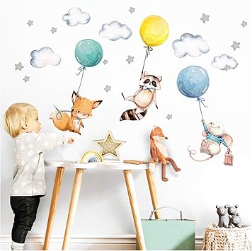 Wandaufkleber Tiere Im Ballon - 109x64cm Für Kinderzimmer Deko