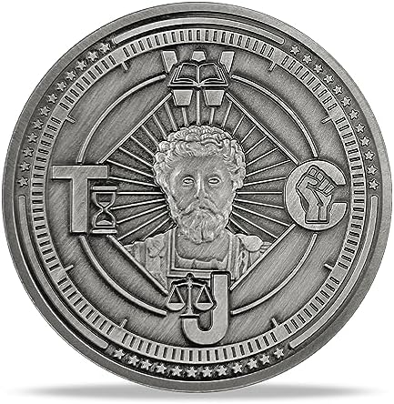 Diese Stoic Coin von Imasoner ist richtig deep! Darstellung der vier Kardinaltugenden: Weisheit (Bücher), Mut (Faust), Gerechtigkeit (Balance), Mäßigung (Sanduhr). Aus Zinklegierung mit antik-Silber-Finish - hochwertig verarbeitet. 3,5cm Durchmesser, 0,8mm dick - passt in jede Tasche. Rückseite mit Aufzählung der Tugenden und Kompass-Motiv. Perfekt für tägliche Erinnerung an stoische Philosophie. Tolles Geschenk für sich selbst oder philosophie-interessierte Freunde. Ob als EDC (Every Day Carry) oder Sammlerstück - inspiriert zum besseren Leben!