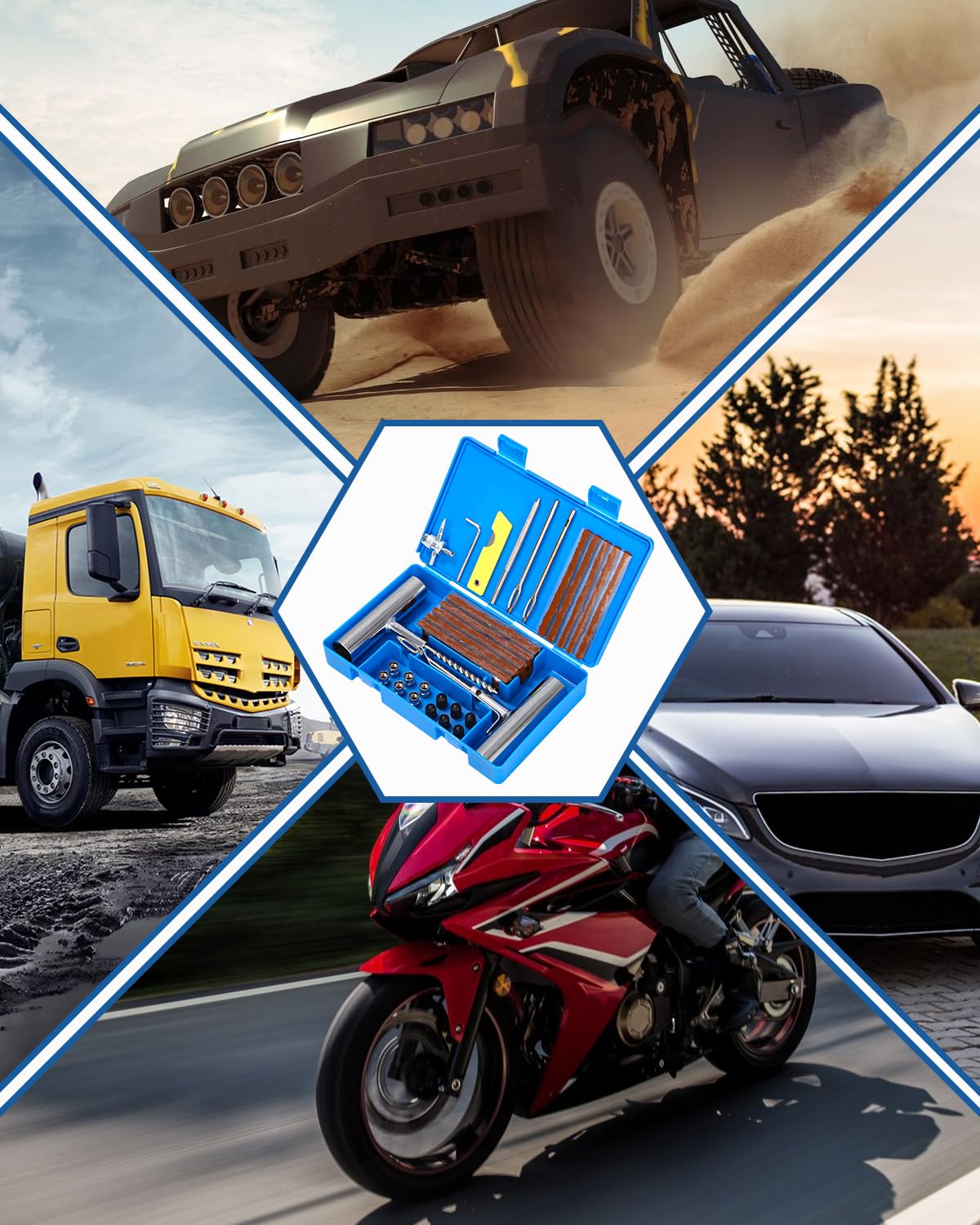 Mann, dieses Reparaturset sollte in JEDEM Auto liegen! Enthält 10 Reparaturstreifen, T-Griff-Sonde, Einführwerkzeug, Messer und Spezial-Lösung - alles sicher verpackt im robusten Koffer. Die rutschfesten Griffe geben dir perfekten Halt, selbst mit Handschuhen. Die schnell trocknende Flüssigkeit sorgt für dauerhafte Reparaturen - kein Flicken, der nach 2 Wochen wieder aufgeht. Perfekt für Autos, Motorräder, Wohnmobile und sogar Rasenmäher! Die farbcodierte Anleitung macht's super einfach - selbst als Laie kriegst du das hin. Einfach Loch finden, Streifen einführen, fertig! So überstehst du jede Panne stressfrei und kommst sicher zur nächsten Werkstatt. Das Set ist klein genug fürs Handschuhfach, aber rettet dir im Ernstfall den Tag. Einfach mal einpacken - besser haben als brauchen!
