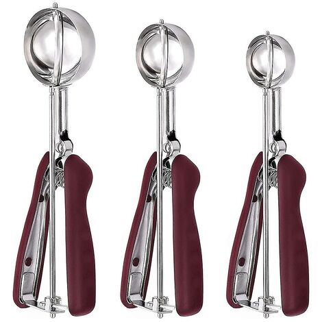 Backfans, dieses 3-teilige Keksschaufel-Set ist ein echter Game-Changer in der Küche! Mit drei verschiedenen Größen (4cm, 5cm, 6cm Durchmesser) hast du für jede Aufgabe die richtige Schaufel parat. Das ergonomische Entriegelungssystem macht das Auslösen super easy - einfach drücken und der Teig löst sich wie von selbst! Aus lebensmittelechtem Edelstahl gefertigt, sind sie nicht nur hygienisch, sondern auch super langlebig. Perfekt für gleichmäßige Kekse, Eisportionen, Cupcakes, Muffins oder sogar Fleischbällchen! Die glänzende Oberfläche sieht nicht nur gut aus, sondern ist auch super leicht zu reinigen. Egal ob Rechts- oder Linkshänder - diese Schaufeln liegen perfekt in der Hand. Für zu Hause, Bäckereien oder Eisdielen - überall wo präzise Portionen gebraucht werden! Mach dein Back-Erlebnis noch professioneller und spaßiger mit diesem praktischen Set! Einfach ausprobieren und staunen, wie gleichmäßig deine Kreationen werden!