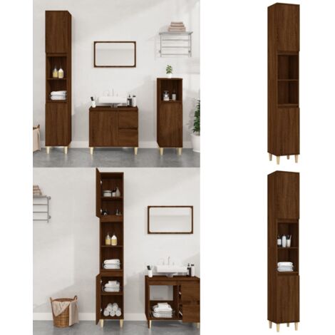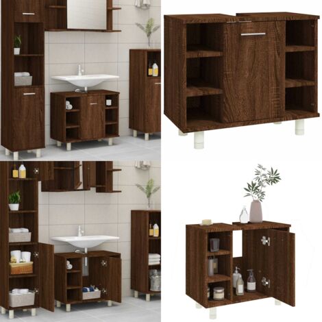 Mehr Ordnung im Bad? Kein Problem mit diesem vidaXL Waschbeckenunterschrank! In brauner Eichenoptik sieht er nicht nur stylisch aus, sondern bietet auch jede Menge Stauraum für Shampoo, Seife, Zahnpasta und Co. Mit 60x35x60cm (LxBxH) ist er kompakt und die Aussparung (8x20cm) macht Platz für Abflussrohre. Aus feuchtigkeitsbeständigem Holzwerkstoff - stabil und langlebig. Wichtig: Mit der mitgelieferten Wandhalterung sichern, damit nichts umkippt. Einfach aufbauen und schon wird dein Bad aufgeräumt und gemütlich. Perfekt für alle, die praktische und schöne Badezimmermöbel lieben!