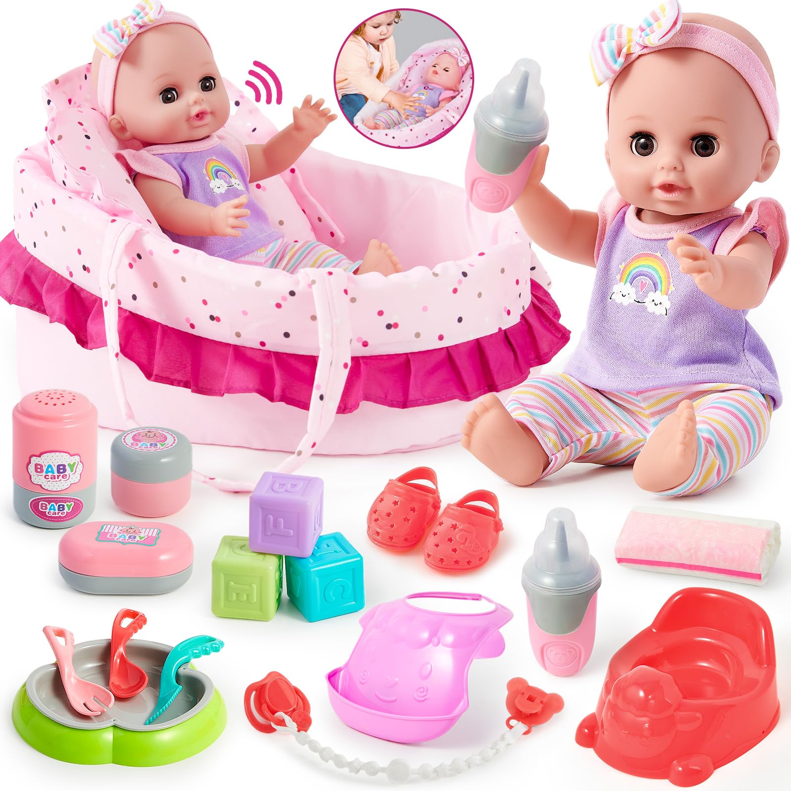 So süß! Diese 30 cm große Babypuppe von eDollable ist das perfekte erste Puppenkind für deinen kleinen Schatz. Komplett mit niedlicher rosa Kleidung, einem Fläschchen, Schnuller und weicher Decke kommt sie in einer hübschen Geschenkbox - einfach auspacken und sofort losspielen! Die Größe ist ideal für kleine Hände, dein Kind kann die Puppe überall hin mitnehmen. Der Schnuller ist praktischerweise mit einem Band am Outfit befestigt, geht also nicht so schnell verloren. Beim Puppenspiel lernen Kinder ganz nebenbei, sich um andere zu kümmern, Verantwortung zu übernehmen und ihre sozialen Fähigkeiten zu entwickeln. Ob füttern, schlafen legen oder einfach nur kuscheln - mit dieser Puppe wird's nie langweilig. Perfekt als Geschenk zum Geburtstag, zu Weihnachten oder einfach so. Aus kindersicheren Materialien gefertigt, damit dein Kleines lange Freude daran hat. Einfach unschlagbar süß und pädagogisch wertvoll!