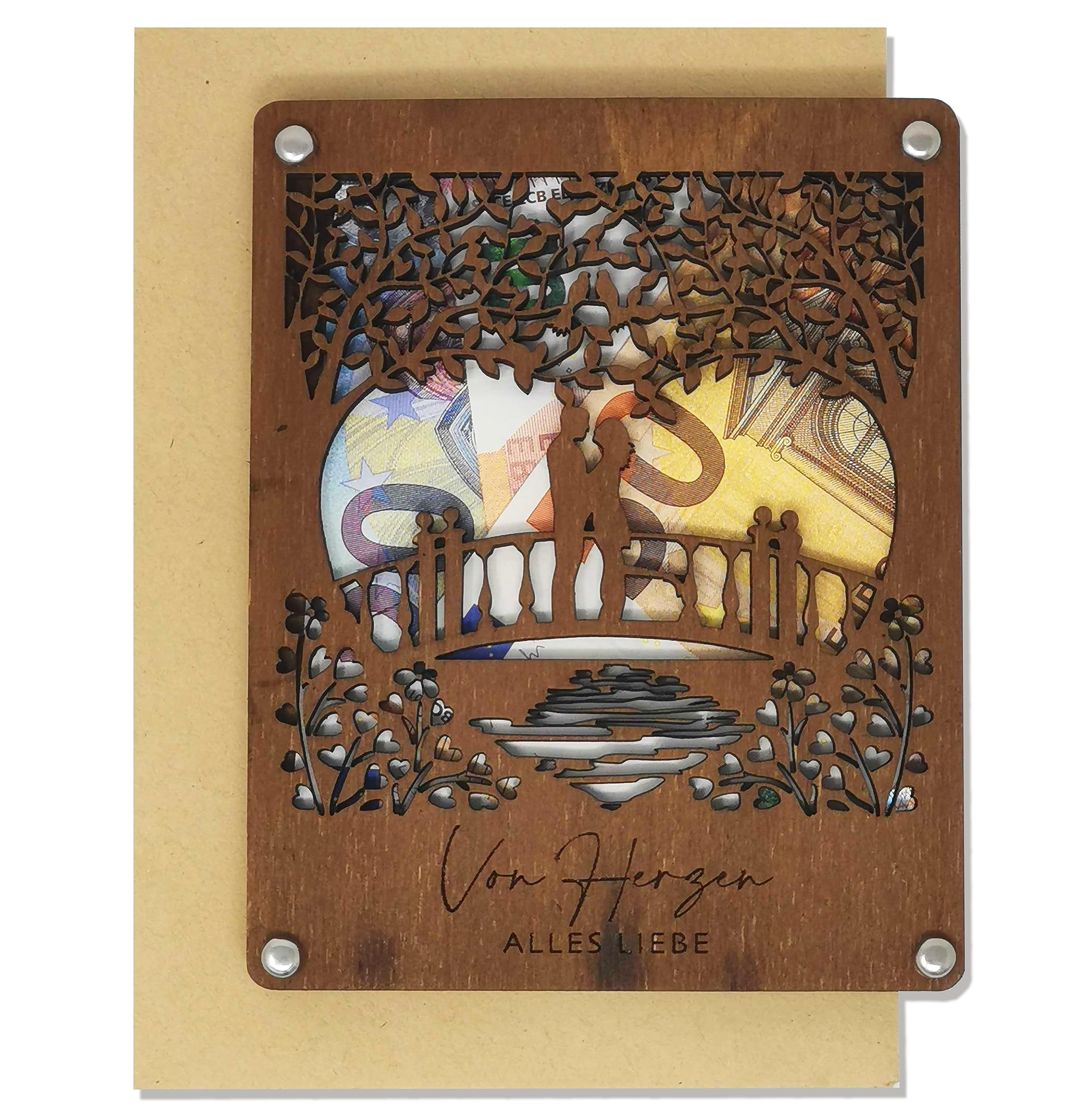 Holz Geldgeschenk Hochzeit - Hand In Hand Design Mit Karte
