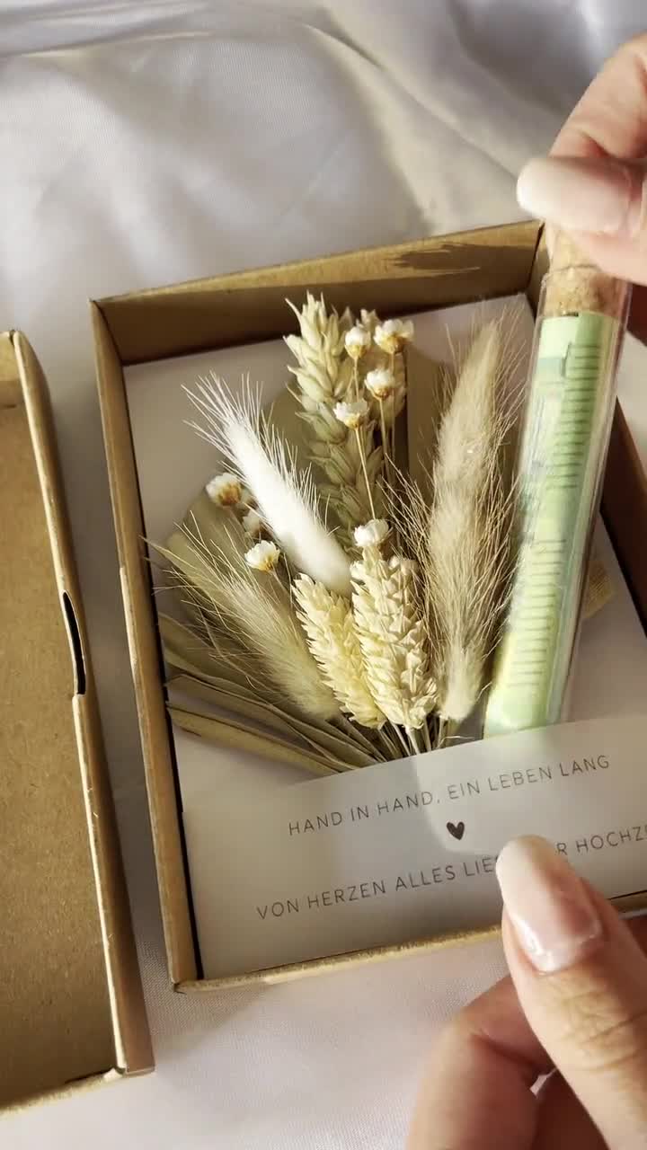 Was für eine wunderschöne Idee für ein Hochzeitsgeschenk! Dieses Geldgeschenk aus Holz im 'Hand in Hand' Design ist viel mehr als nur eine Verpackung für Geld. Hergestellt aus 4mm starkem Pappelholz, fühlt es sich hochwertig an und wird zu einem bleibenden Andenken für das Brautpaar. Zwischen den beiden Holzschichten befindet sich Platz für Geldscheine, aber auch für Fotos oder eine persönliche Nachricht. Das Papier in der Mitte hat auf der Vorderseite ein elegantes schwarz-goldenes Design und auf der Rückseite Platz für deine Glückwünsche. Nach der Hochzeit kann das Paar das Geld entnehmen und stattdessen ein Hochzeitsfoto einlegen - so wird aus dem Geldgeschenk ein wunderschöner Fotorahmen! Komplett mit passender Hochzeitskarte und in einer stylischen Geschenkbox geliefert. Hergestellt in Deutschland mit viel Liebe zum Detail. Viel persönlicher und kreativer als ein langweiliger Umschlag! Das Brautpaar wird sich noch Jahre später an dieses besondere Geschenk erinnern. Einfach das Geld reinlegen, persönliche Worte schreiben und dem glücklichen Paar überreichen!