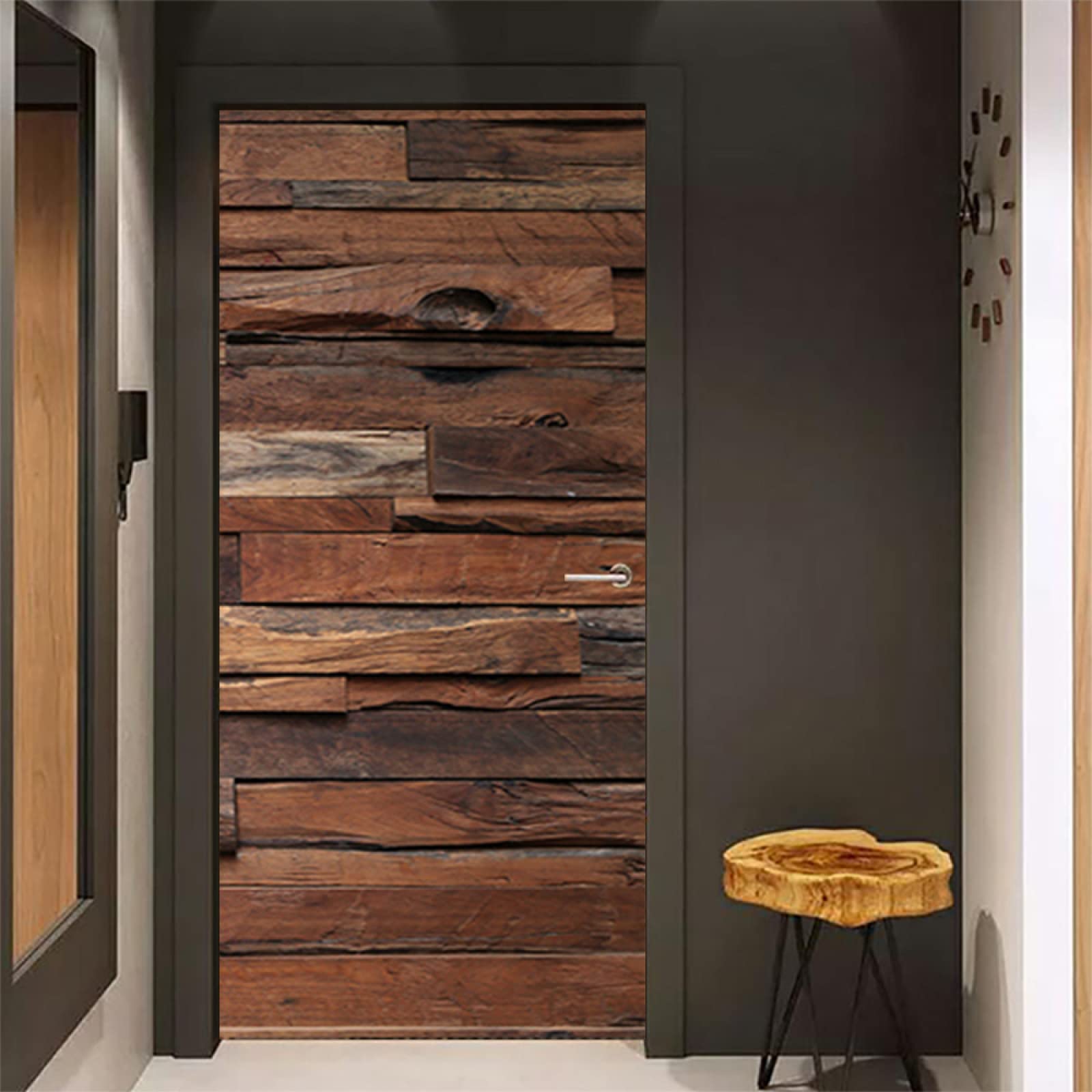 Deine Tür sieht langweilig aus? Mit dieser selbstklebenden Türtapete in trendiger Holzoptik machst du daraus einen echten Hingucker! Die Folie besteht aus hochwertigem PVC, ist wasserdicht, abziehbar und hinterlässt keine Klebereste. Einfach die Türgriffe entfernen, die Oberfläche gut reinigen und die beiden Teile der Tapete anbringen - schon verwandelst du deine langweilige Tür in ein stylisches Möbelstück! Mit den Maßen 95x210 cm (andere Größen verfügbar) passt sie an die meisten Standardtüren. Die 0,3 mm dicke Folie ist robust und hält auch mal was aus. Aber Vorsicht: Bevor du bestellst, miss lieber nochmal deine Tür nach, damit alles perfekt passt! Die lebendige 3D-Optik wirkt täuschend echt und verleiht jedem Raum sofort mehr Charme. Und das Beste: Wenn dir das Design irgendwann nicht mehr gefällt, ziehst du die Folie einfach wieder ab und probierst was Neues aus. So renovierst du ganz ohne Handwerker und sparst dabei noch Geld!