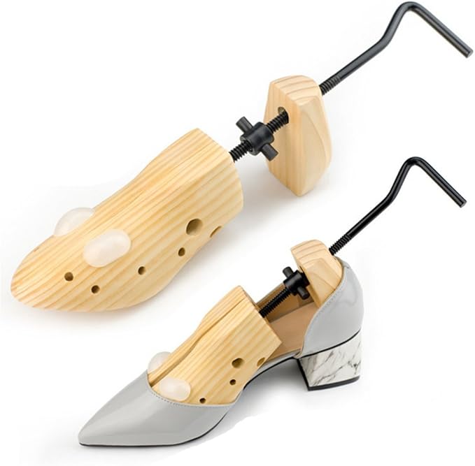 Kennst du das? Neue Schuhe drücken furchtbar oder deine Lieblingsschuhe sind mit der Zeit unbequem geworden? Mit diesem cleveren 2-Wege Schuhdehner aus Holz ist Schluss damit! Der Dehner arbeitet in zwei Richtungen - er dehnt deine Schuhe nicht nur in der Breite, sondern auch in der Länge. Super praktisch, denn so passt sich der Schuh genau deinem Fuß an. Hergestellt aus hochwertigem Buchenholz und Metall, ist er richtig stabil und bricht nicht so schnell wie billige Plastik-Teile. Im Lieferumfang sind 6 schwarze Knöpfe dabei, mit denen du gezielt kleine Druckstellen bearbeiten kannst. Einfach den Dehner in den Schuh stecken, den Griff drehen bis zur gewünschten Weite und dann 24-48 Stunden wirken lassen. Danach passt der Schuh wie angegossen! Funktioniert für beide Füße gleich gut - ob linke oder rechte Schuhe, ob Herren oder Damen. Nie wieder Blasen oder schmerzende Füße! Perfect für neue Schuhe oder um alte Lieblingsschuhe wieder bequem zu machen. Einfach genial für jeden Schuh-Fan!