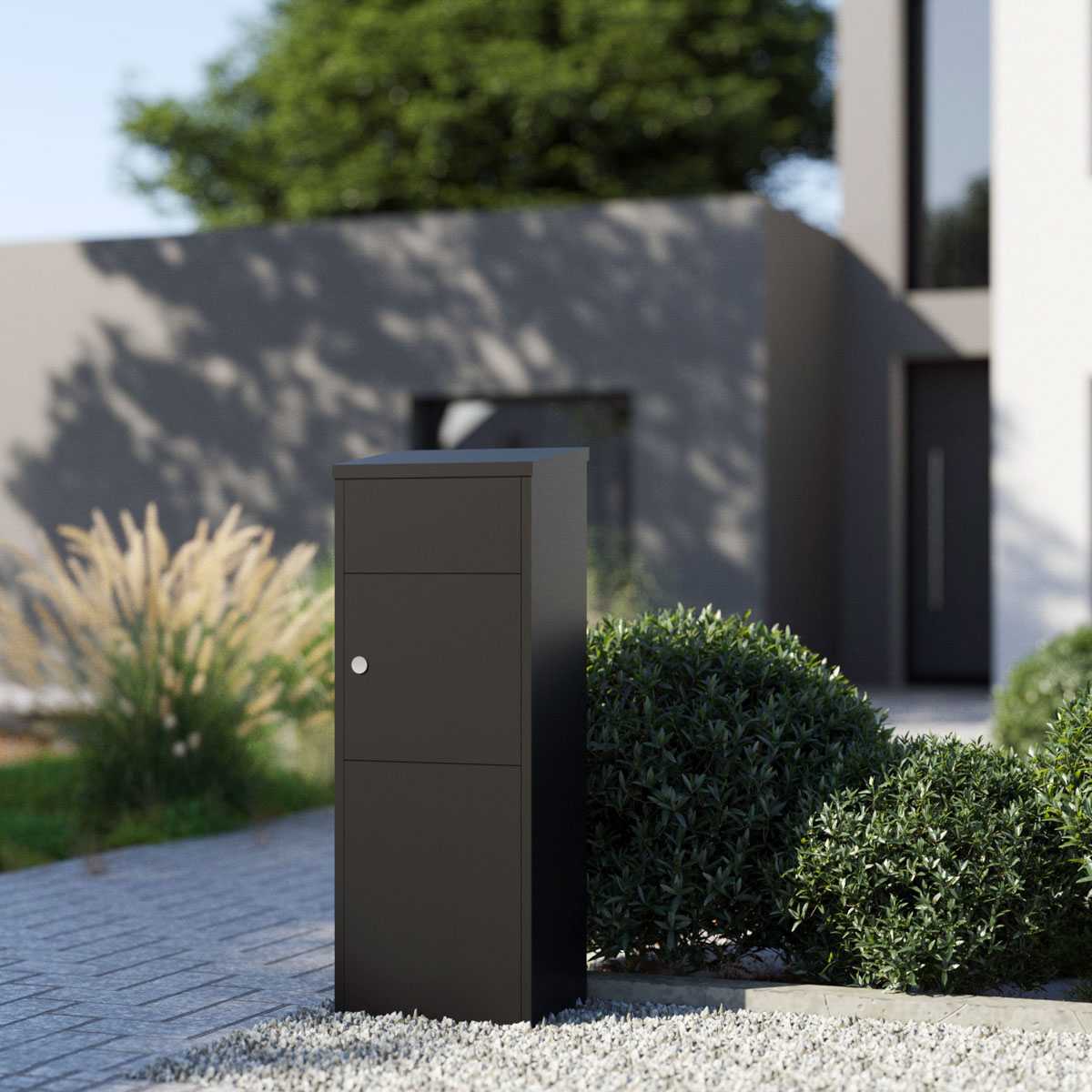 Endlich keine Sorgen mehr um deine Pakete! Die Alberona Paketbox in schickem Schwarz (RAL9005) ist die perfekte Lösung für alle, die viel online bestellen. Aus robustem, pulverbeschichtetem Stahlblech - hält jeden Witterungseinflüssen stand und schützt deine Sendungen vor Diebstahl. Maße: 43cm Breite, 96cm Höhe, 41,5cm Tiefe - da passen Pakete bis 350x400x325mm problemlos rein.