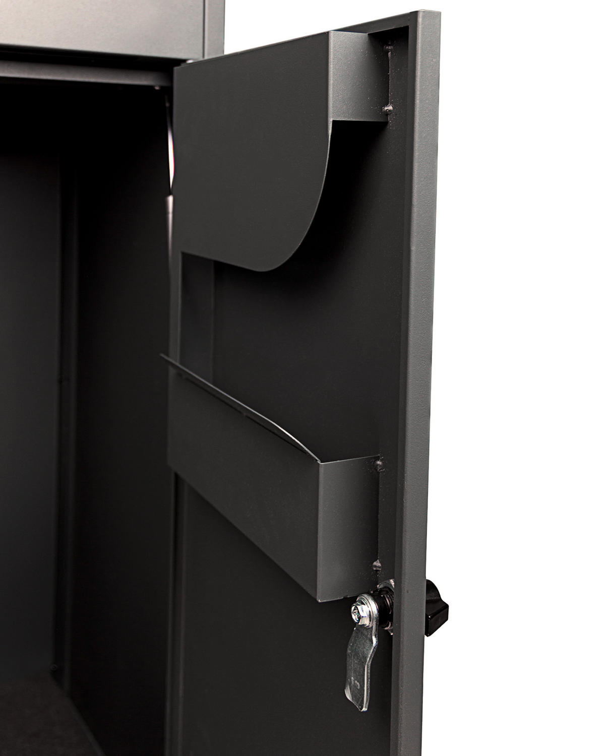 Nie wieder verpasste Lieferungen oder nasse Pakete! Deine Post bleibt trocken und geschützt, egal ob Regen, Schnee oder Sonne. Einfach aufstellen und entspannt zurücklehnen - deine Pakete sind in besten Händen. Übrigens: Passende Hausnummern und Klingeltaster findest du auch bei uns im Shop!