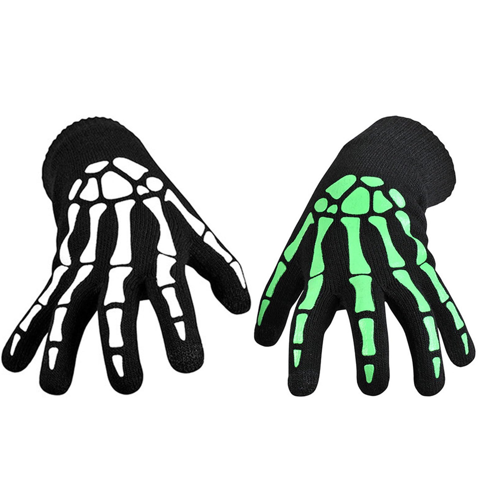 Mach dein Halloween-Kostüm unvergesslich! Diese schwarzen Skelett-Handschuhe leuchten im Dunkeln – gruselig und voll im Trend.