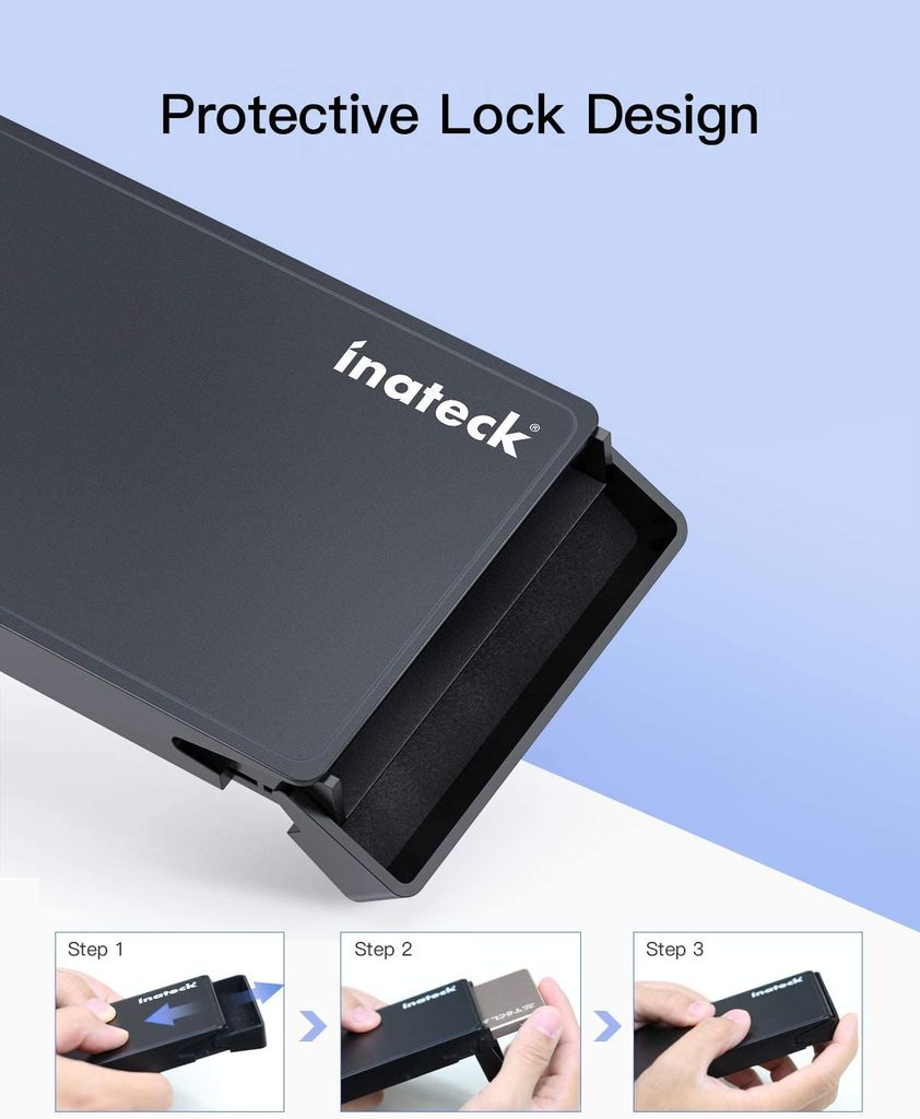 Alte Festplatten wiederbeleben war noch nie so einfach! Dieses Inateck Gehäuse macht aus deiner 2.5 Zoll HDD oder SSD (7mm/9,5mm) eine portable externe Festplatte. Mit USB-C Anschluss und bis zu 5 Gbit/s Übertragung - super schnell dank UASP Unterstützung. Kompatibel mit SATA I/II/III, werkzeuglos zu montieren. Inklusive USB-C auf USB-A Kabel, kein Treiber nötig. Wechselt nach 10 Minuten automatisch in den Ruhemodus - spart Strom und schont die Platte. Funktioniert mit Windows, Mac und Linux. Perfekt für Backups, Datenrettung oder einfach mehr Speicherplatz. Einfach Platte reinschieben, zuklicken und fertig!