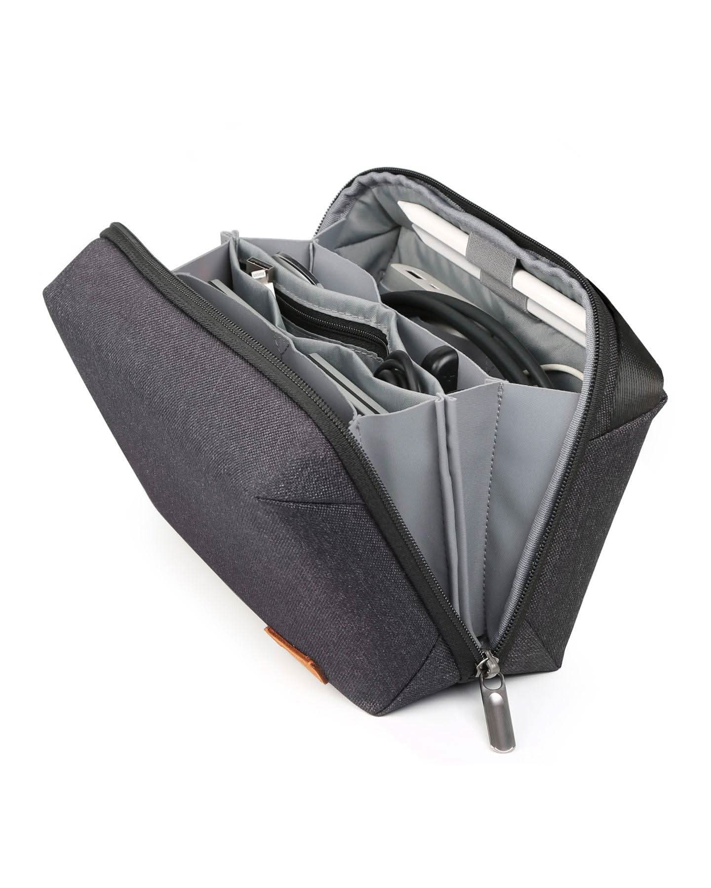 Diese Kabeltasche von Inateck bringt Ordnung in dein Elektronik-Chaos! Aus wasserabweisendem 420D Nylon gefertigt, schützt sie deine wertvollen Kabel, Powerbanks und Adapter zuverlässig. Mit 2 Litern Fassungsvermögen ist sie groß genug für all dein Tech-Zubehör, aber dennoch kompakt und leicht. Das geniale Design: Wenn du sie aufklappst, steht sie von selbst und du hast alle Fächer perfekt im Blick. 6 verschiedene Fächer im Hauptbereich, plus Netzfächer und Stifthalter vorne - alles hat seinen Platz! Die YKK-Reißverschlüsse laufen super smooth und halten ewig. Besonders praktisch: Die Aufhängungspunkte für einen Schultergurt (separat erhältlich), sodass du die Tasche auch bequem umhängen kannst. Ob auf Reisen, im Büro oder einfach für zu Hause - dieser Organizer hält dein gesamtes Elektronik-Zubehör sicher und ordentlich verstaut. Die polsterte Rückseite schützt deine Geräte zusätzlich vor Stößen. Ein Must-have für alle Tech-Fans!