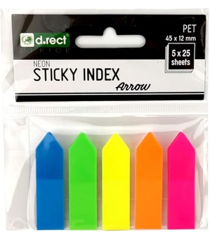 Super praktisch fürs Büro oder Home-Office: Diese Pfeil-förmigen Indexhaftstreifen in verschiedenen knalligen Farben! Jede Packung enthält 4x24 Blätter in leuchtenden Farben - da findet sich für jede Kategorie die passende Farbe. Mit 12x43mm sind sie groß genug für gut lesbare Notizen, aber klein genug um nicht aufzufallen. Aus 60μm starker PP-Folie gefertigt, sind sie richtig robust und der Kleber ist wasserentfernbar - keine klebrigen Rückstände! Perfekt zum Markieren in Büchern, Ordnern oder als Lesezeichen. Einfach beschriften, aufkleben und wichtige Stellen sofort wiederfinden. Ein echter Helfer für mehr Organisation im Arbeitsalltag!