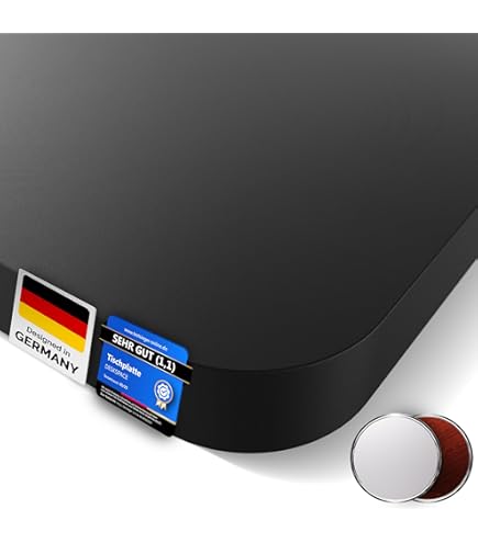 Du suchst eine Schreibtischplatte, die genau zu deinem Raum passt? Hier ist sie! Von 150x80cm bis 200x100cm kannst du Größe und Form individuell anpassen - alle 5cm. Made in Germany, mit 2mm Laserkante und in verschiedenen Dekoren wie Eiche, Graphit oder Weiß. Wählbar zwischen 19mm und 25mm Stärke. Die Oberfläche ist super kratzfest und hält bis zu 120kg aus. Perfekt fürs Home Office oder Büro. Die leicht abgerundeten Ecken sehen nicht nur gut aus, sie sind auch praktisch. So bekommst du einen Schreibtisch, der wirklich zu dir passt - ohne Kompromisse!