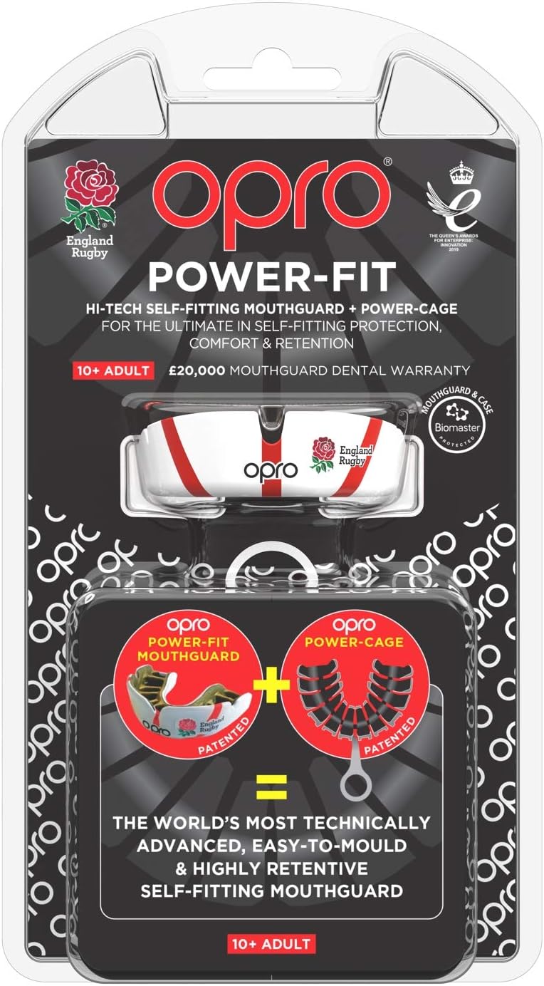 Schütz deine Zähne beim Sport! Der Opro Power Fit Mundschutz passt sich perfekt deinem Gebiss an - ganz einfach selbst anpassbar. Mit dem patentierten Power-Cage System formst du ihn kinderleicht zu deinem persönlichen Mundschutz. Die cleveren Flinnen sorgen für optimalen Halt, ohne zu stören. Du kannst normal atmen und sprechen, während der Schutz sitzt. Perfekt für Boxen, Rugby, Hockey und alle Sportarten mit Körperkontakt. Für Erwachsene ab 12 Jahren. In schickem Schwarz/Rot Design. Nie mehr unangenehme Standard-Mundschutze - dieser wird wirklich zu deinem persönlichen Begleiter!