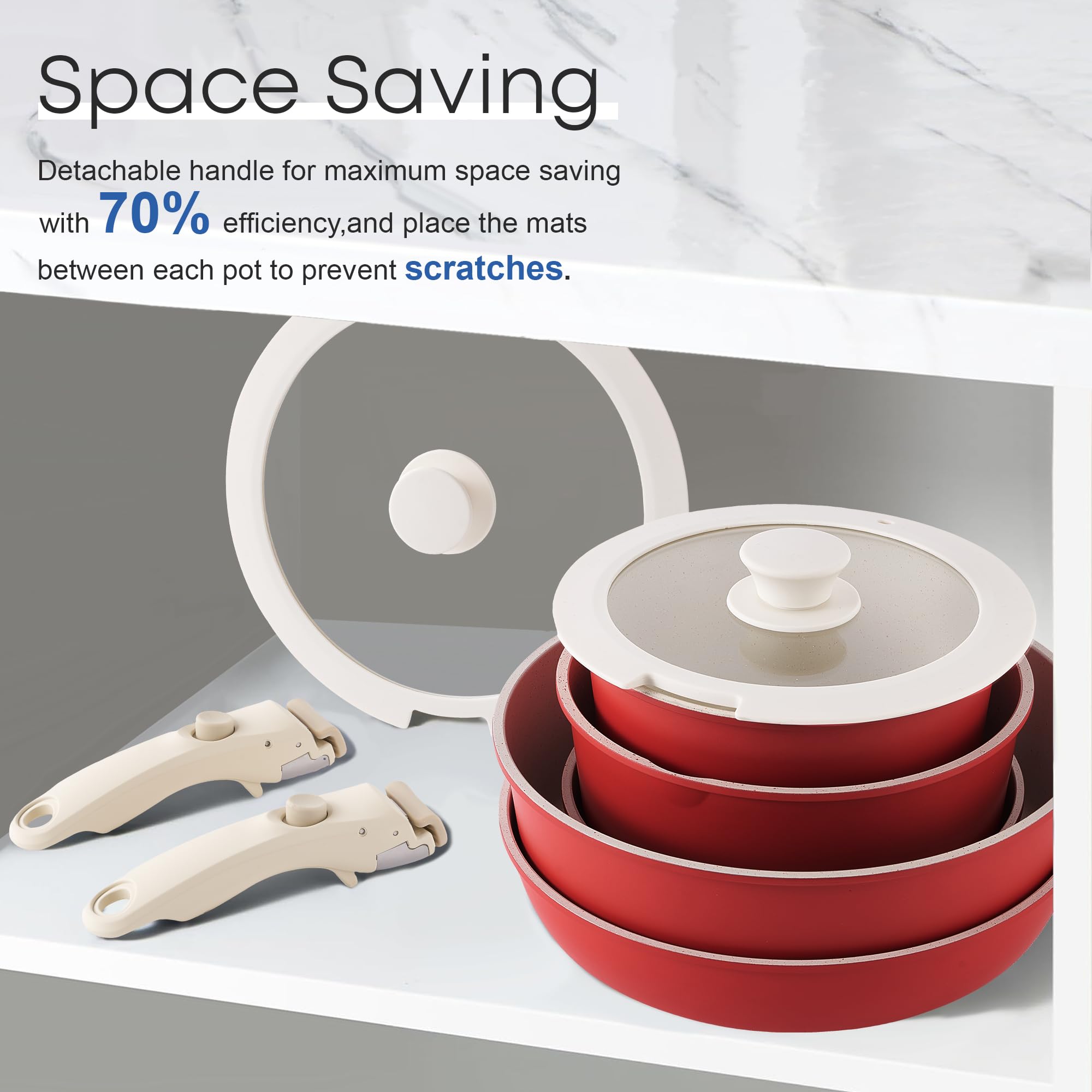 • RIOVARM Induktion Kochgeschirr Set - Granit Antihaft Mit Abnehmbaren Griffen Stapelbar
