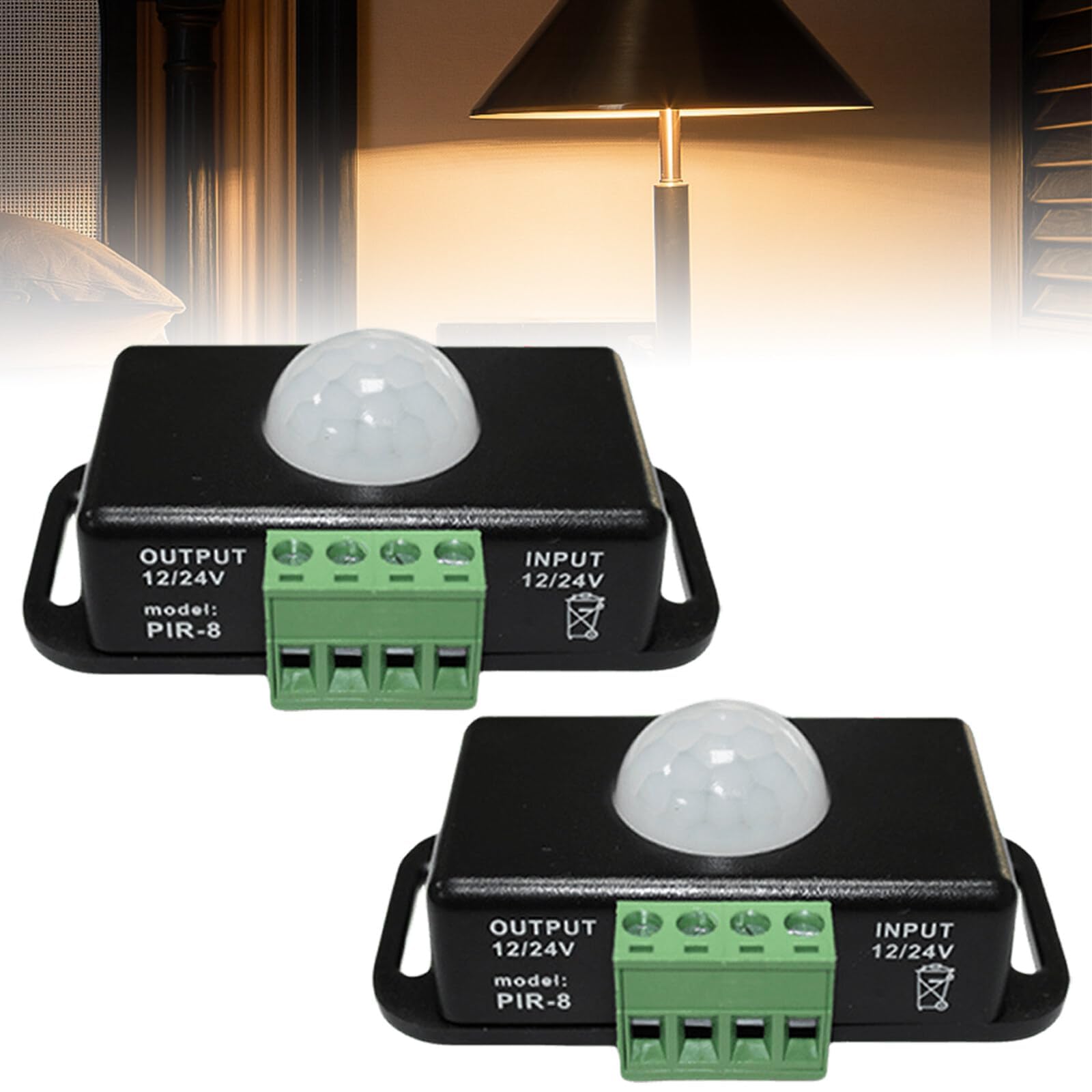 Perfekte Lösung für automatische Beleuchtung! Dieses 2er-Set LED Bewegungsmelder sorgt für komfortables Licht genau dann, wenn du es brauchst. Der mini Sensor erkennt zuverlässig jede Bewegung im Bereich von 5-10 Metern und schaltet deine LED Streifen oder Leuchten automatisch ein. Super praktisch für Flur, Keller oder Garten! 💡\n\nTechnische Highlights:\n• Spannung: 12-24V DC\n• Stromstärke: 6A\n• Erfassungswinkel: 130° (links/rechts), 110° (oben/unten)\n• IP20 Schutz - ideal für Innenbereiche\n• Verzögerungszeit: 1-10 Minuten einstellbar\n\nDas Besondere: Der Sensor besteht aus hochwertigem PP-Material mit verzinnten Kupferleitern für optimale Leitfähigkeit. Einfach per Drehknopf auf der Rückseite die gewünschte Einschaltdauer einstellen - schon geht's los! ✨\n\nPerfekt für: LED Streifen, Nachtlichter, Schrankbeleuchtung, Treppenhaus - überall wo praktisches Licht gefragt ist! Spart Energie und verlängert die Lebensdauer deiner Leuchten.