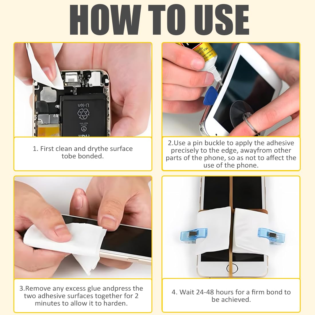 Perfekt für alle Handy-Reparaturen! Der T8000 Display Kleber in der praktischen 110ml Flasche ist dein bester Freund bei kaputten Smartphone-Displays. Mit der Präzisionsnadel trägst du den Kleber millimetergenau auf - ohne Kleckern und ohne Verstopfung. Wasserfest, geruchlos und trocknet ohne weiße Rückstände - was will man mehr? Im Set enthalten: 11 Demontage-Werkzeuge für professionelle Reparaturen. Einfach auftragen, 3 Minuten warten und nach 24 Stunden ist die Verbindung bombenfest! Nicht nur für Handys, sondern auch für Glas, Holz, Metall, Schmuck und vieles mehr. Ob du das Display deines iPhones, Samsungs oder anderer Geräte reparieren willst - mit diesem Kleber wird alles wieder wie neu. Die vielseitige Formel verbindet unterschiedlichste Materialien zuverlässig. Mach deine Reparaturen zum Kinderspiel und spare teure Werkstatt-Kosten!