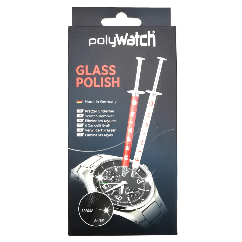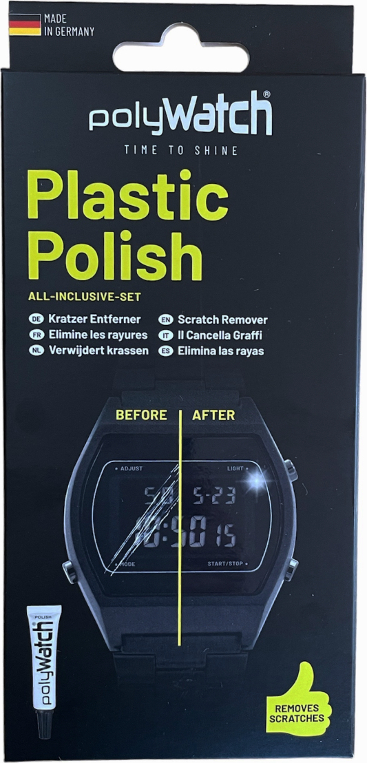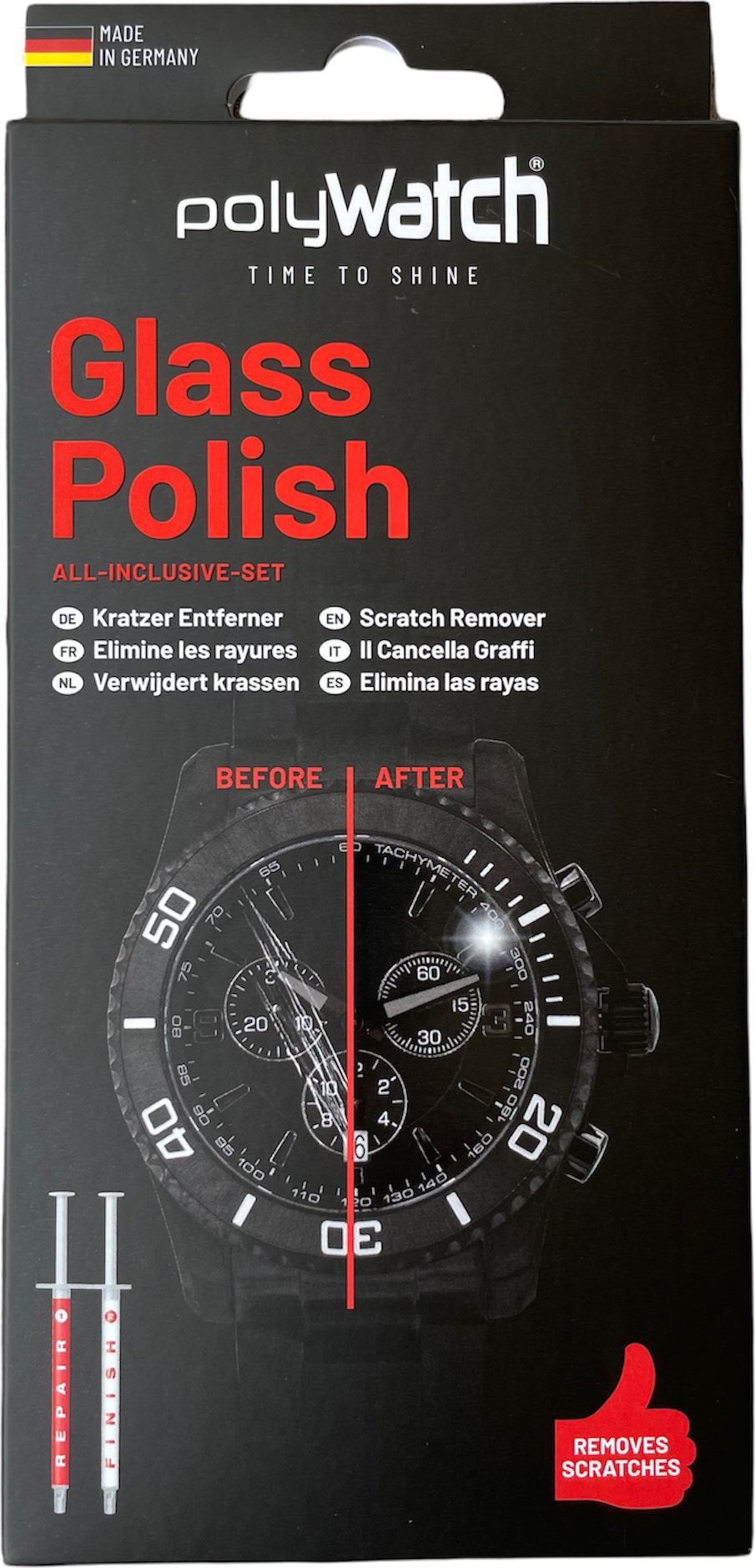 Hey, kennst du das? Deine Uhr hat Kratzer auf dem Glas und sieht total mitgenommen aus? Mit der polyWatch Polierpaste wird das wieder wie neu! Aber Achtung: Funktioniert NUR bei Kunststoffgläsern (Plexi), nicht bei Mineral- oder Saphirglas! Einfach ein bisschen Paste drauf, mit dem beiliegenden grauen Poliertuch reinigen - und schwupps, die Kratzer sind weg! Inhalt: 5 gr. Tube, reicht für viele Anwendungen. Ist Markenware, richtig gute Qualität. Wichtig: Nicht in Kinderhände geben! Hab's bei meiner alten Armbanduhr ausprobiert - hat super funktioniert! Einfach auftragen, polieren, und das Glas sieht wieder aus wie frisch aus dem Laden. Echt ein lifesaver für alle, die ihre Uhren wieder auf Vordermann bringen wollen. Einfach anzuwenden und das Ergebnis spricht für sich!