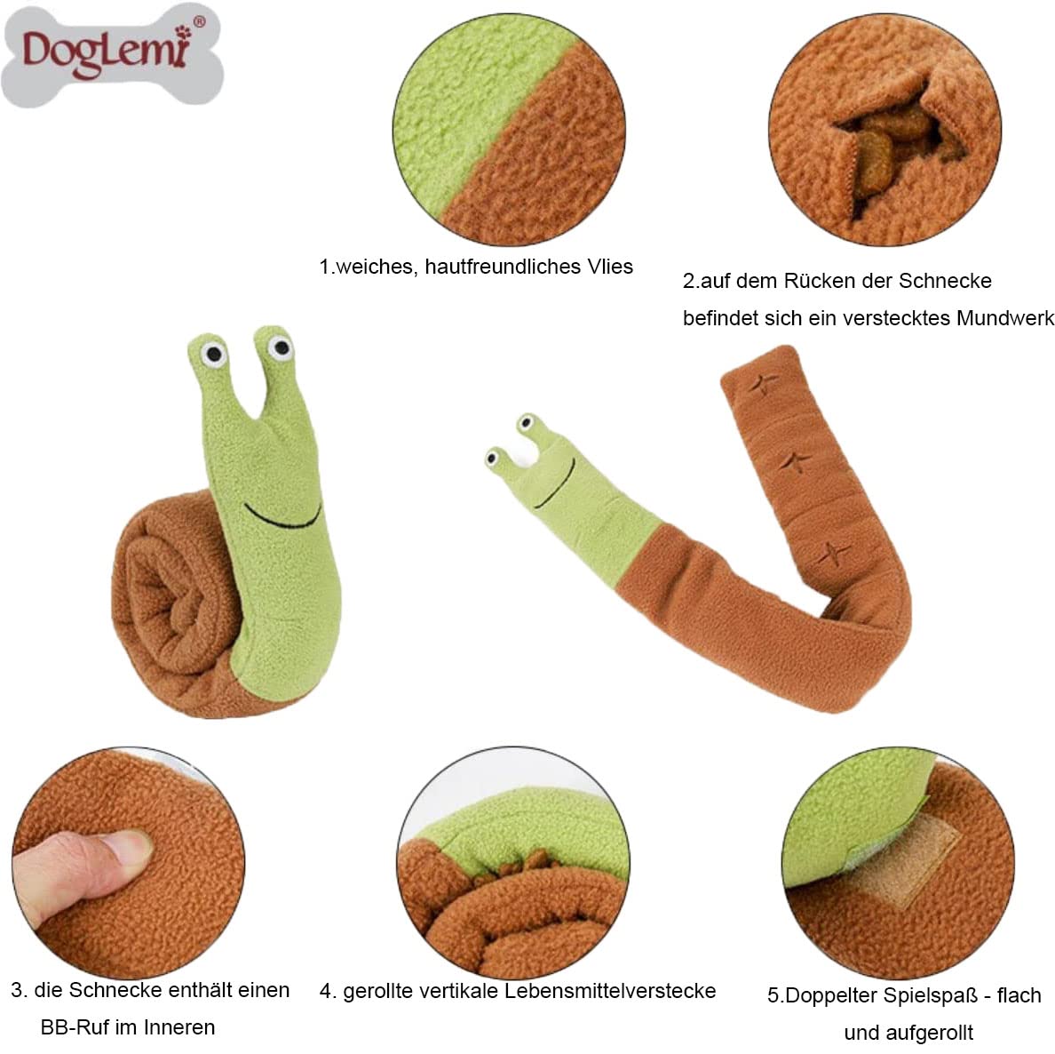 Hey, dein Hund langweilt sich manchmal? Diese niedliche Schnecke als Hundespielzeug ist die perfekte Beschäftigung! Sie ist 27,5 Zoll lang und hat innen einen Quietscher, den Hunde lieben. Das coole: Du kannst den Klettverschluss lösen, und aus der Schnecke wird eine Schlange - super für Zerrspiele! Das Schnüffeln nach Leckerlis darin trainiert den Kopf deines Hundes - 10 Minuten Schnüffeln sind wie 1 Stunde Gassi! Aus weichem, ungiftigem Plüsch, der auch für empfindliche Hunde geeignet ist. Maschinenwaschbar und leicht zu reinigen. Perfekt um Stress abzubauen und deinen Hund geistig fit zu halten. Einfach versteckte Leckerlis rein - und dein Hund ist beschäftigt! 🐶