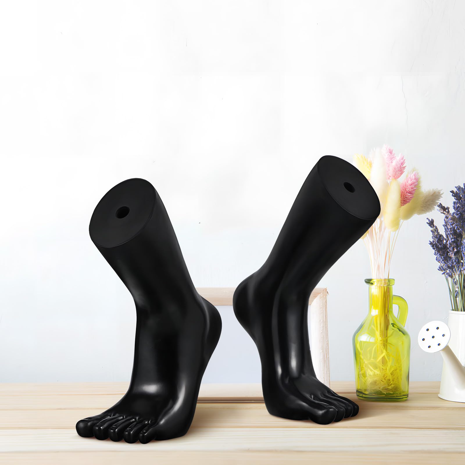Perfekt für deine Socken-Präsentation! Diese realistischen Fußmodelle machen jedes Produkt zum Hingucker.\n\nIm 2er-Set - ideal für vergleichende Darstellungen oder verschiedene Größen.\n\nDas besondere Design mit realistischen Zehen macht sie perfekt für:\n• Zehensocken\n• Normale Socken\n• Fußkettchen\n• Schmuck\n• Auch für kleine Schuhe geeignet\n\nHergestellt aus hochwertigem Vinyl-Material:\n• Glatte Oberfläche\n• Angenehm anzufassen\n• Robust und langlebig\n• Nicht leicht zu beschädigen\n\nDie Füße stehen stabil und kippen nicht um - super wichtig für die tägliche Präsentation im Laden.\n\nEinsatzmöglichkeiten:\n• Einzelhandelsgeschäfte\n• Ausstellungen und Messen\n• Fotoshootings\n• Online-Shop Präsentation\n• Warenhaus-Displays\n\nDie hohe Realismus-Stufe überzeugt Kunden und zeigt deine Produkte in bestem Licht. Socken sehen einfach besser aus, wenn sie so natürlich präsentiert werden!\n\nEinfach aufstellen, Produkte drauf - und schon wirken deine Socken viel ansprechender. Ein echter Game-Changer für deine Warenpräsentation!