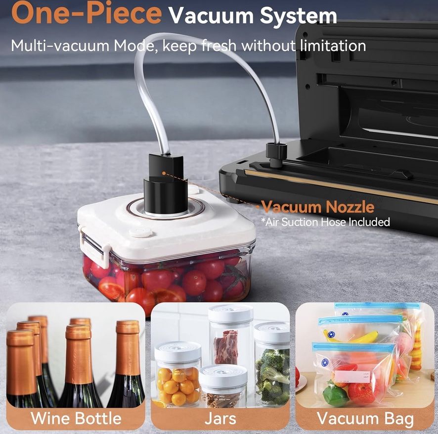 Frische länger genießen – mit diesem praktischen Vakuumiergerät von Irishom! Kabellos und handlich – du kannst es überall nutzen. Starke 60kPa Saugkraft für luftdichte Versiegelung. LCD-Display zeigt Akkustand an – Typ-C Schnellladung. Inklusive 10 Vakuumbeutel, 2 Deckel, Pumpendüsen und mehr. Einfache Bedienung – automatischer Versiegelungsvorgang. Ideal für Lebensmittel – Fleisch, Gemüse, Käse bleiben länger frisch. Verhindert Gefrierbrand und Aromaverlust. Kompakte Maße (16x8cm) – platzsparend in der Küche. Hol dir das Set und reduziere Lebensmittelverschwendung – frischer Genuss garantiert!
