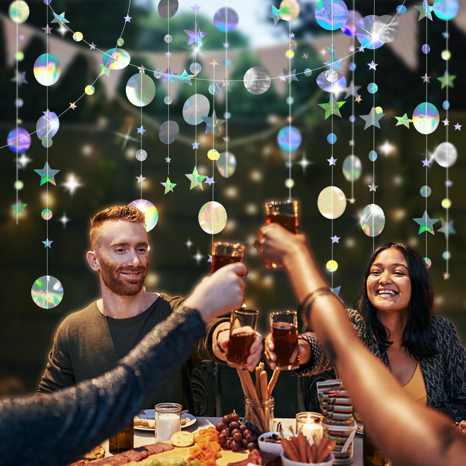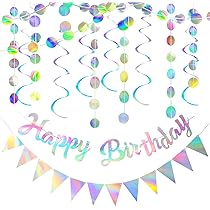 Juhu, Party-Time! Diese Geburtstags-Girlande im irisierenden Glitzer-Look macht deine Feier zum absoluten Highlight! Das Set enthält alles, was du für eine kunterbunte Dekoration brauchst: 1x irisierende Girlande, 1x Dreieck-Banner mit metallischem Glanz, 2x 4 Meter Sterne-Runde-Girlande und 7x Hohlsterngirlanden. Einfach aufhängen und schon sieht deine Party aus wie im Märchen! Die Girlanden sind doppelseitig und aus hochwertigem Bastelkarton - super langlebig und wiederverwendbar. Unter Licht funkeln sie in allen Regenbogenfarben und verleihen deiner Feier diese magische Atmosphäre. Ob an Wänden, Bäumen, Fenstern oder Decken - die Deko macht überall eine gute Figur. Perfekt nicht nur für Geburtstage, sondern auch für Hochzeiten, Weihnachten, Silvester oder Fasching. Die Aufhängung ist total easy: Einfach alle Teile verteilen und aufhängen - schon kann die Party losgehen! Ein super Geschenk für Geburtstagskinder jeden Alters. Aber Vorsicht: Da die Girlanden aus Papier sind, sollten sie nicht in die Nähe von Feuer oder Wärmequellen kommen. Ansonsten: Viel Spaß beim Dekorieren und Feiern!