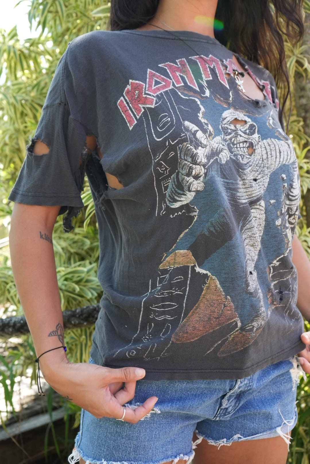 Show your metal spirit! Dieses offizielle Iron Maiden Powerslave T-Shirt mit dem ikonischen Mumien-Kopf Design ist ein absolutes Must-Have für jeden Metal-Fan. In Navy-Blau mit Langarm ist es nicht nur stylisch, sondern auch perfekt für kühlere Tage. Der klassische Schnitt und doppelt genähter Saum garantieren hohen Tragekomfort und Langlebigkeit. Hergestellt aus weichem Baumwollmaterial fühlt es sich angenehm auf der Haut an. Ob für Konzerte, Festivals oder einfach im Alltag - dieses Shirt zeigt, wo deine musikalische Heimat ist. Perfekt für Männer, Frauen, Jungen und Mädchen - echte Metal-Community! Das Powerslave-Albumcover zählt zu den bekanntesten Designs der Band und ist ein zeitloser Klassiker. Hol dir ein Stück Metal-Geschichte und trag deine Leidenschaft für Iron Maiden mit Stolz!