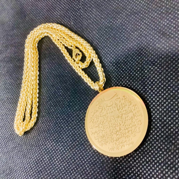 Diese wunderschöne Ayatul Kursi Halskette ist mehr als nur Schmuck - sie ist ein Ausdruck deines Glaubens! Mit dem mächtigen Koran-Vers in eleganter arabischer Kalligraphie trägst du deine Spiritualität immer bei dir. Aus hochwertigem Edelstahl gefertigt, ist die Kette absolut hautverträglich und für empfindliche Haut geeignet. Erhältlich in Gold, Silber, Schwarz und Roségold - für jeden Geschmack und jedes Outfit. Perfekt für Männer und Frauen gleichermaßen, ob für den täglichen Gebrauch oder besondere Anlässe. Diese Halskette verleiht jedem Outfit eine spirituelle Note und erinnert dich an den Segen dieses wichtigen Koran-Verses. Ein wunderbares Geschenk für liebe Angehörige oder einfach für dich selbst. Trag deinen Glauben mit Stolz und Stil - diese Ayatul Kursi Halskette begleitet dich durch den Alltag und schenkt dir spirituelle Kraft.