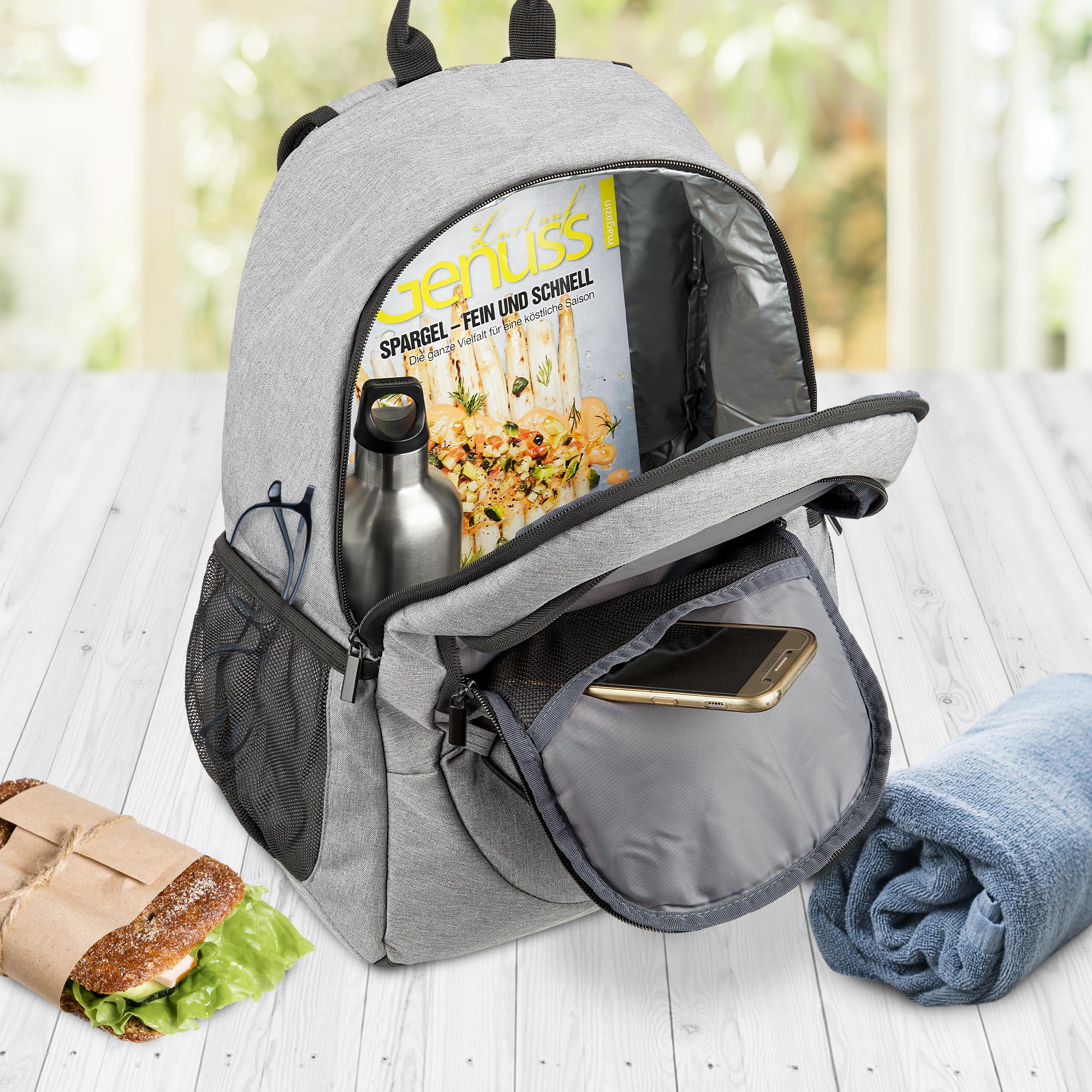 Perfekter Begleiter für deine Abenteuer! Dieser praktische Kühlrucksack mit 18 Liter Fassungsvermögen hält deine Getränke und Speisen stundenlang kühl. Aus robustem Oxford-Stoff mit wasserdichter EVA-Innenisolierung - ideal für heiße Tage. Bequem zu tragen mit ergonomischen Schultergurten und atmungsaktivem Rücken. Mit Hauptfach, Fronttasche und zwei Seitentaschen für optimalen Stauraum. Maße: 37x26x19,5cm - perfekt für Picknick, Camping, Strand, Angeln oder Sportevents. Hält Bier, Wein, Obst und Snacks frisch. Dein zuverlässiger Partner für jedes Outdoor-Event - ob Festival, Wandertour oder Gartenparty!