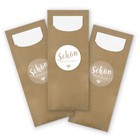 Perfekt gedeckte Tische für jede Feier! Diese 24 braunen Bestecktasche aus Kraftpapier machen jede Tischdeko komplett. Inklusive weißer Papierserviette und 24 runden Aufklebern mit 'Schön DASS du da bist' Aufschrift. Einfach Besteck rein, eventuell Aufkleber drauf - schon ist die Tischdeko fertig! Super für Geburtstage, Hochzeiten, Grillpartys oder Firmenfeiern. Hygienisch und stylisch zugleich. Die Taschen sind 20cm lang und 8,2cm breit - passen für jedes Standard-Besteck. Die Aufkleber sind optional, falls du es schlichter magst. Praktisch, preiswert und sieht trotzdem edel aus. Mach deine nächste Feier zu etwas Besonderem!