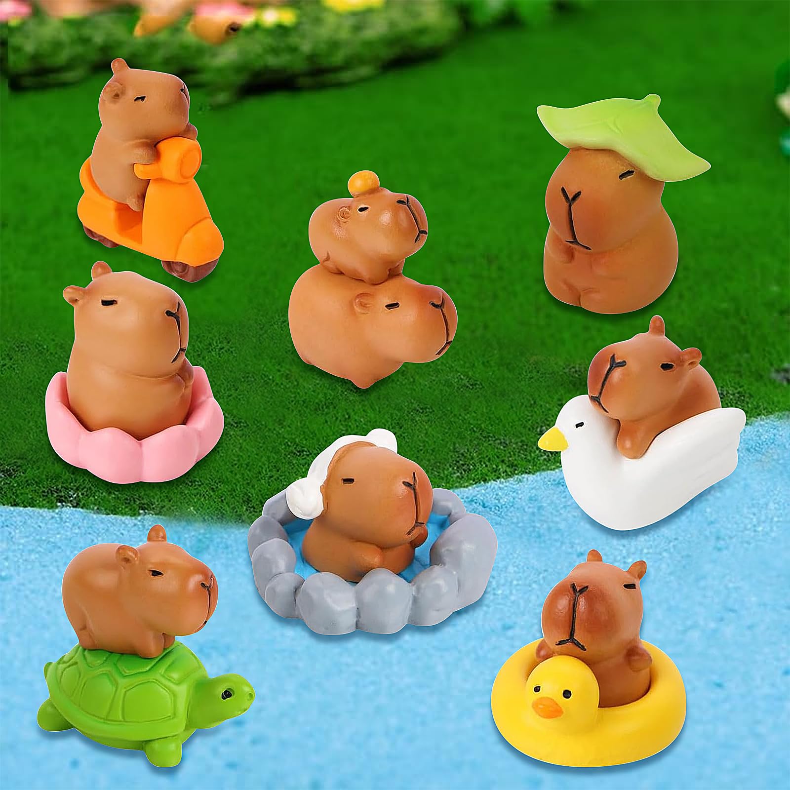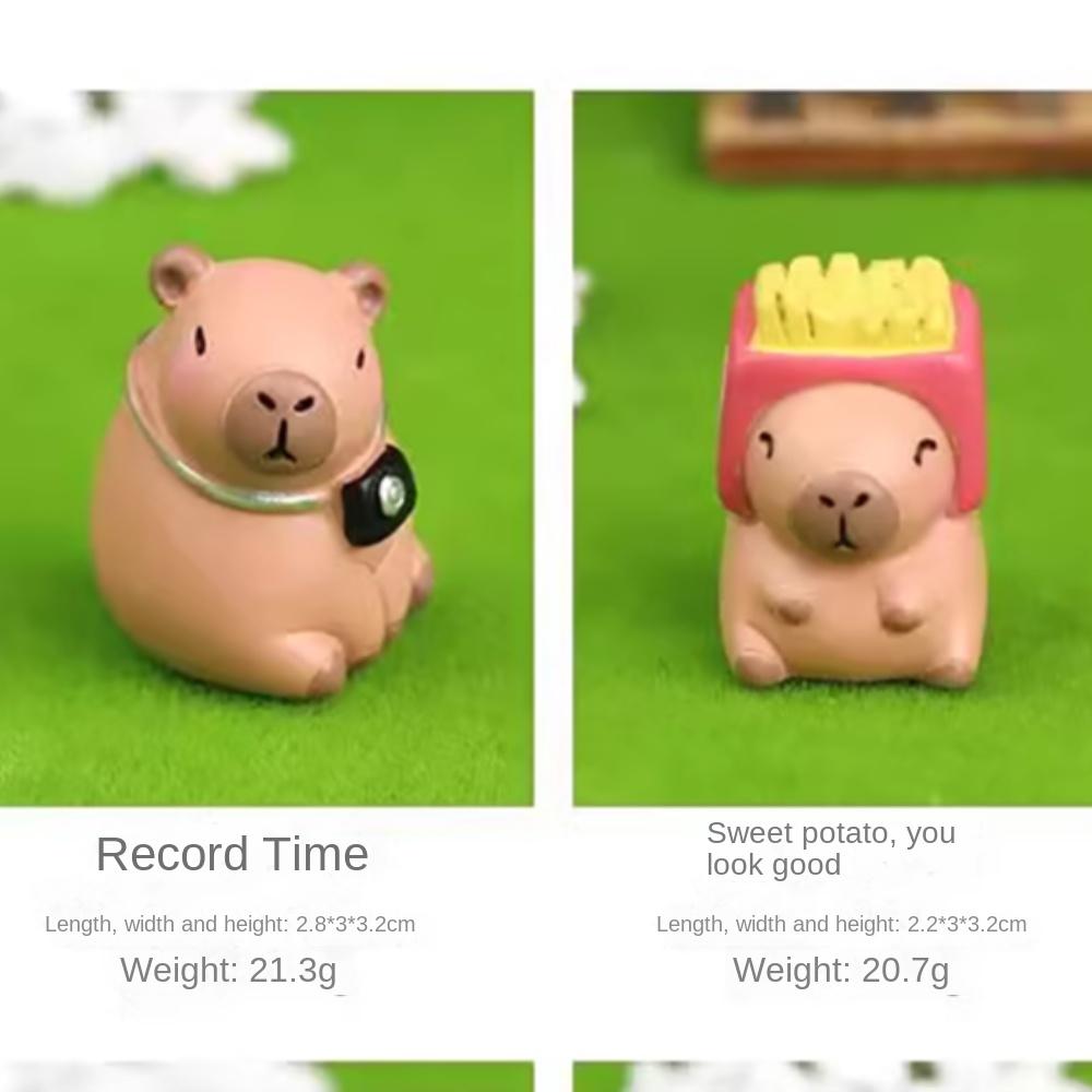 Wie süß sind denn diese kleinen Capybaras! Dieses 9-teilige Set mit mini Plüsch-Kapibaras ist einfach nur niedlich. Jede Figur ist etwa 3x2,8x4 cm groß und aus weichem Plüsch mit Kunststoffanteilen. Perfekt für alle möglichen Deko-Ideen: Auf Torten für Kindergeburtstage, in Miniaturlandschaften, als Tischdekoration oder einfach als süße Accessoires im Regal. Die verschiedenen Farben und Posen machen das Set besonders abwechslungsreich. Super für DIY-Projekte, Mooslandschaften oder als kleine Geschenke für Capybara-Fans. Auch für Erwachsene, die diese entspannten Tiere lieben, sind die Figuren ein echter Hingucker. Einfach überall verteilen, wo's ein bisschen mehr Niedlichkeit braucht! Die Qualität ist top - frisch gefärbt und langlebig verarbeitet. Macht sich auch super in Blumentöpfen oder als Auto-Deko. Einfach ein vielseitiges Deko-Set, das garantiert für Lächeln sorgt!