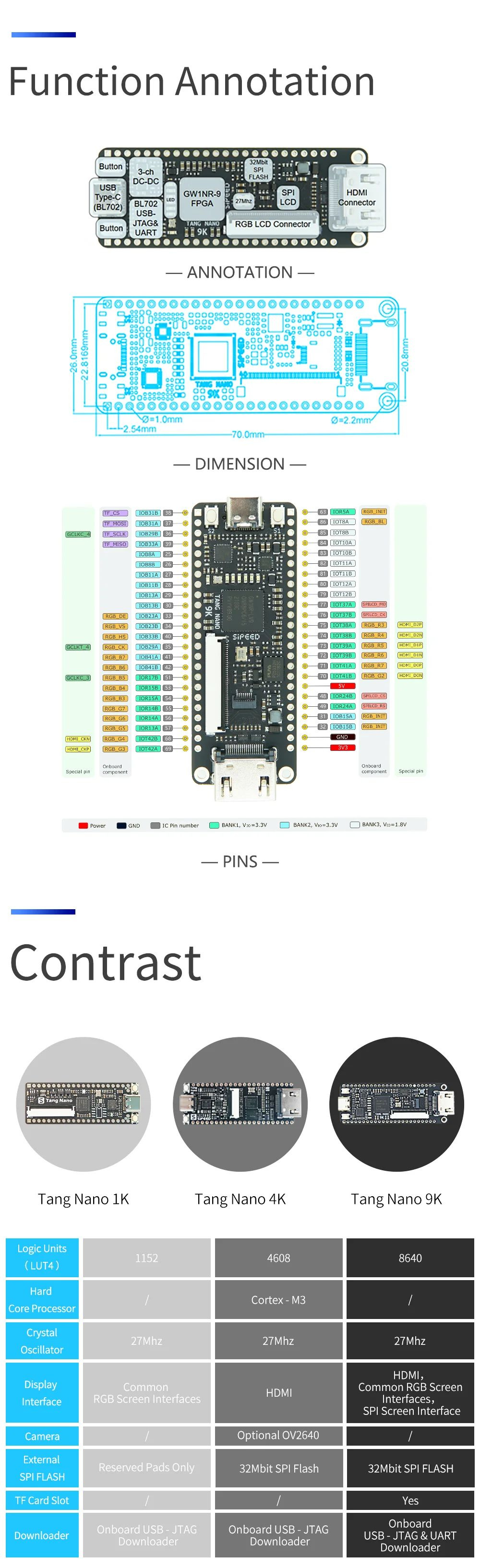 • JANZU Tang Nano 9K FPGA Board - GW1NR-9 Mit RISC-V Kompatibilität