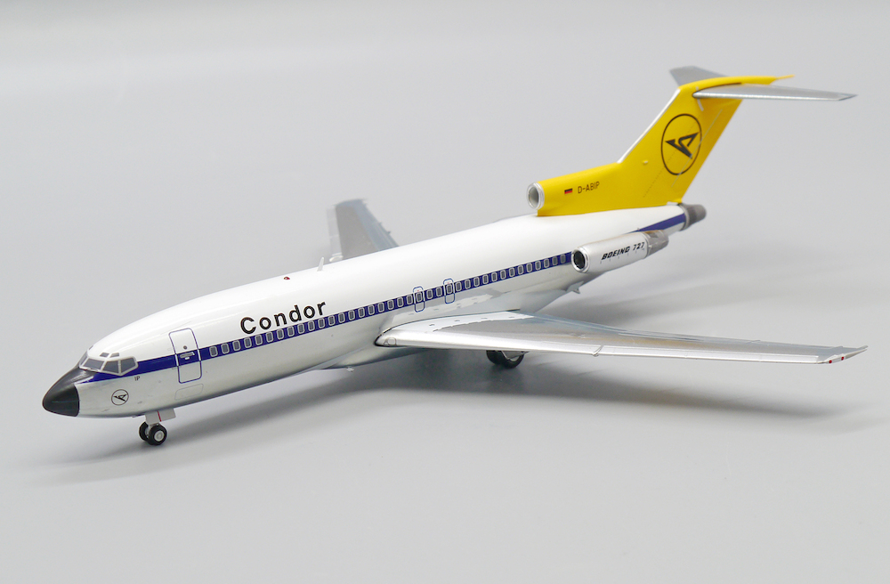 Bist du Flugzeugfan und Sammler? Dieses detailgetreue Boeing 727-100 Modell der Condor mit der Registration D-ABIP ist ein absolutes Highlight! Im Maßstab 1:200 mit ca. 20cm Länge und 16cm Spannweite.