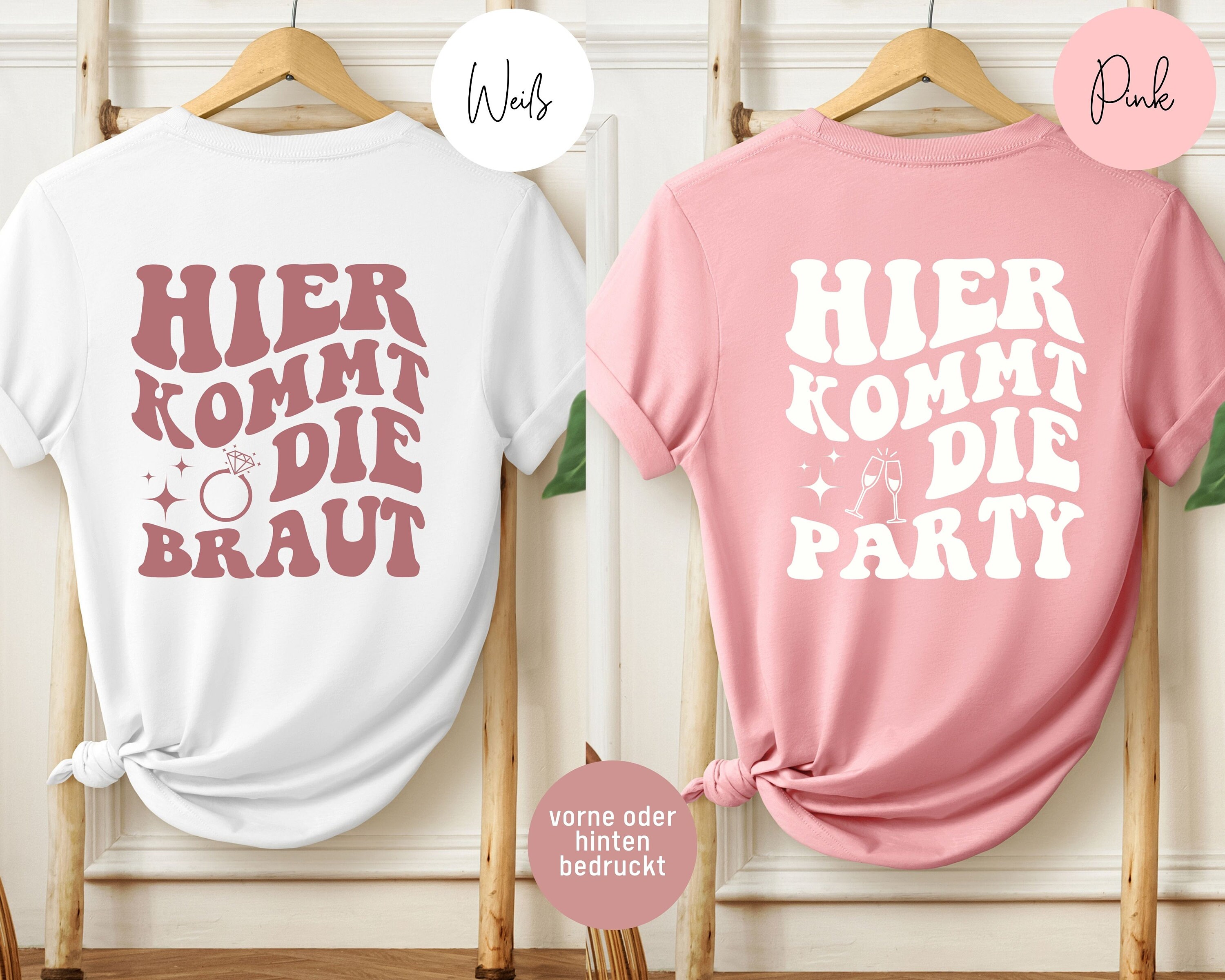 Alles für den perfekten Junggesellinnenabschied! Komplett-Set mit T-Shirt, Schärpe, Armbändern, Herzbrille und Aufkleber. T-Shirt mit Golddruck 'Braut' oder 'Team Bride' in S-XXL. Aus Baumwolle-Polyester-Mix, angenehm zu tragen. Perfekt abgestimmtes Design für die Braut und ihre Mädels. Macht tolle Fotos und unvergessliche Erinnerungen. Ideal für JGA-Partys, Polterabend oder Hochzeitsvorbereitungen. Einfach anziehen und die Feier genießen! Einfach bestellen und den besonderen Tag perfekt vorbereiten! Garantiert lustige Momente und strahlende Brautgesichter.