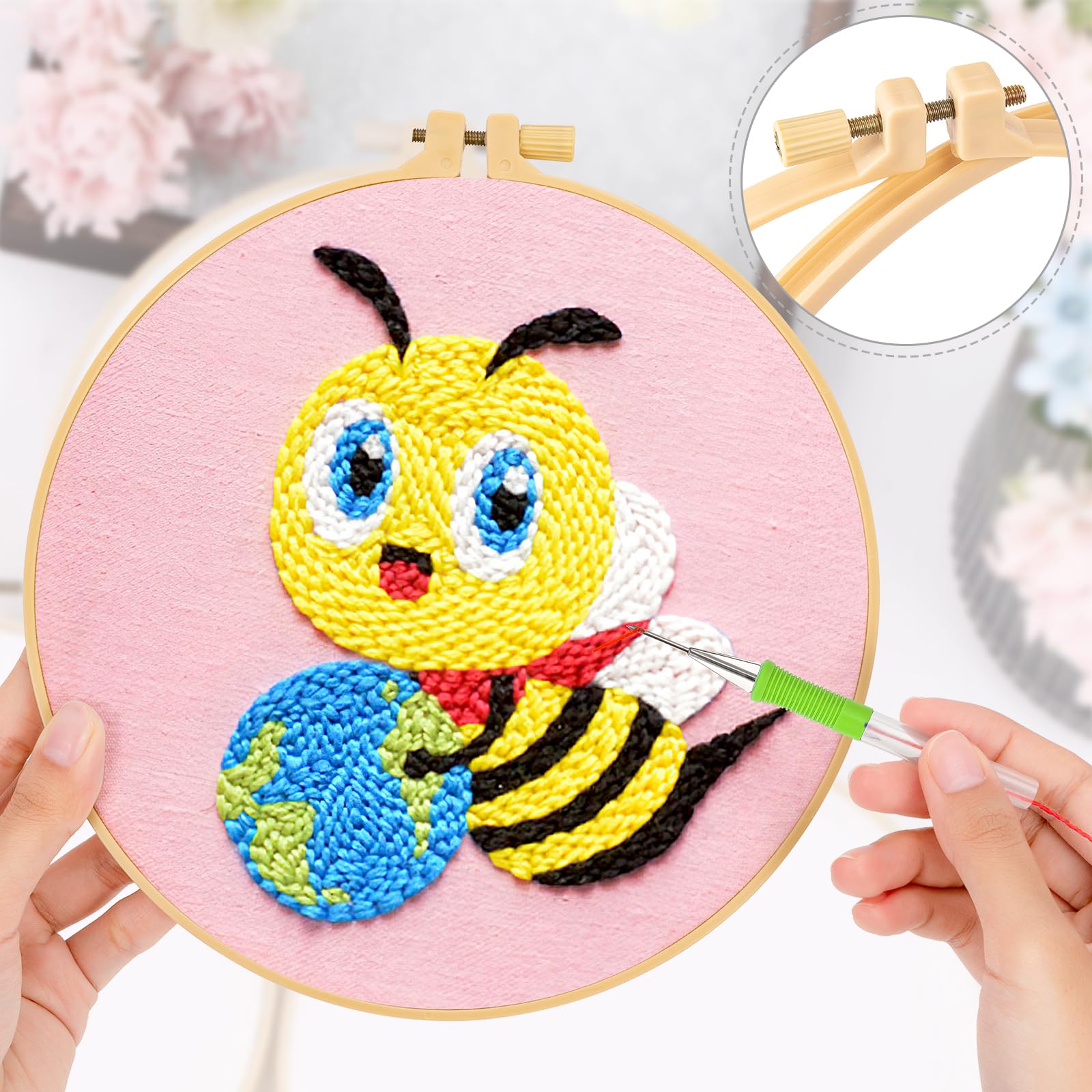 Wow, dieses Punch Needle Set ist perfekt für kreative Hände! 18 Teile im Set: 6 austauschbare Nadelköpfe, 4 Farben Garn, 2 Stanznadeln, 4 Einfädler (2 lang, 2 kurz), 1 Stanznadel mit Holzgriff und 1 separater Griff. Aus hochwertigem Edelstahl, langlebig und präzise. Die Nadeln sind verstellbar für verschiedene Stichlängen und Effekte. Super einfach zu bedienen - auch für absolute Anfänger geeignet. Perfekt für Teppiche, Vorhänge, Wandbehänge oder andere DIY-Kunstwerke. Fördert Geduld und Konzentration - ein tolles Hobby für jedes Alter. Einfach Garn einfädeln und lostüfteln - deiner Kreativität sind keine Grenzen gesetzt!