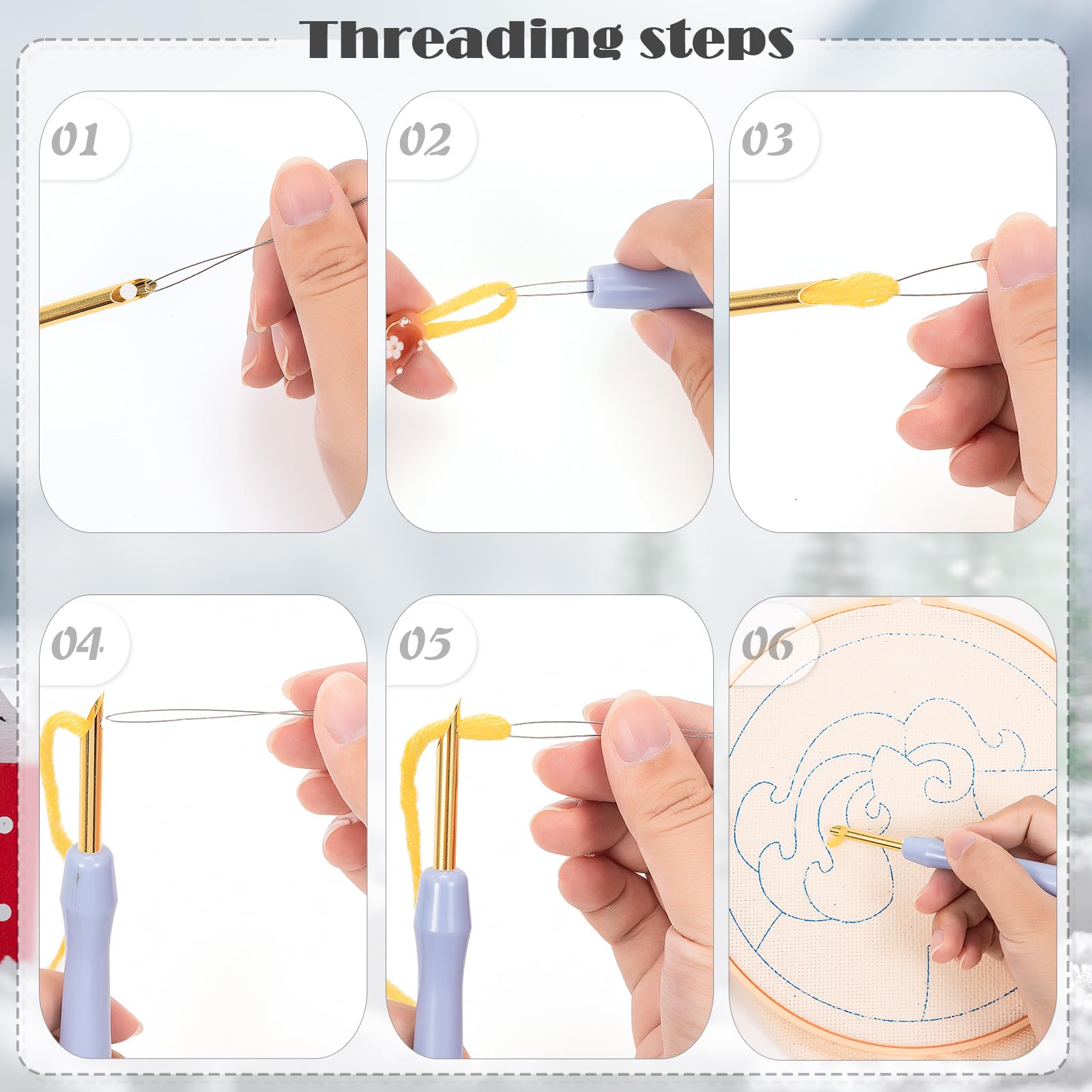 Die englische Anleitung erklärt Schritt für Schritt, wie's geht. Einfach die Nadel einfädeln (das Loch muss nach unten zeigen!) und losstanzen. Der optimale Abstand zwischen den Stichen ist 0,6 cm.