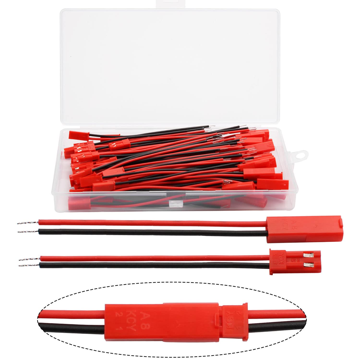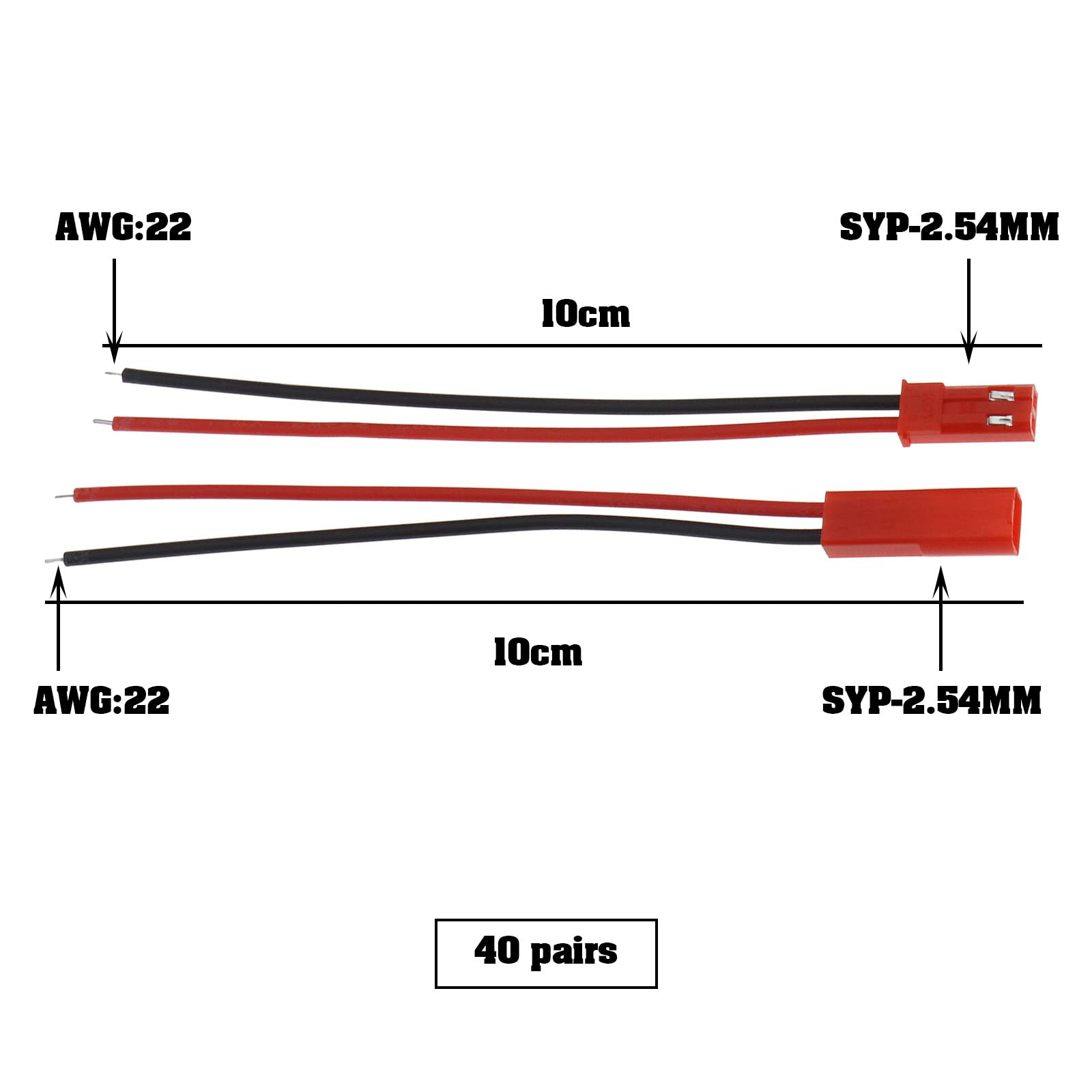 Bastelst du gerne mit LED-Lichtern? Dann sind diese JST 2-Pin Stecker genau das Richtige für dich! Im Set bekommst du 40 Paare - also 40 männliche und 40 weibliche Stecker, jeweils mit 10 cm Kabel dran. Perfekt für deine 3528 oder 5050 LED-Streifen. Die Kabel sind 22 AWG stark und der Stecker selbst ist super kompakt. Einfach draufstecken und schon hast du eine sichere Verbindung. Ideal nicht nur für LED-Lichter, sondern auch für Mini-RC-Helikopter, 3D-Flugzeuge, Vorhanglichter oder Blitzlichter. Die roten und schwarzen Kabel machen die Polung ganz einfach erkennbar. Kein langes Löten mehr - einfach Stecker verbinden und los geht's! Perfekt für deine nächsten DIY-Projekte zu Hause. Mit diesem Set hast du auf Jahre hinaus genug Verbinder für alle deine Elektronik-Projekte!