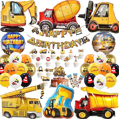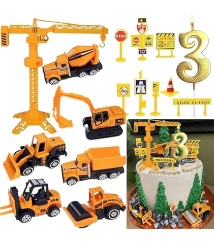 JXAXD Baustellen Torten Deko Set - 11-teilig Mit Baggern & Verkehrsschildern Für Kindergeburtstag