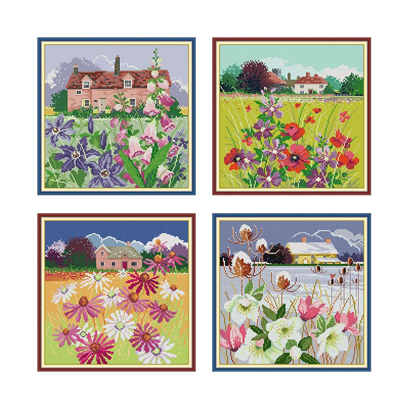Oh, wie schön! Dieses Kreuzstich-Set mit den vier Jahreszeiten-Motiven macht richtig Spaß. 🌸🍁❄️🌷 Das Besondere: Das Muster ist schon auf den Stoff gestempelt - super für Einsteiger! Du musst nur noch lernen, wie man den Vollstich und Rückstich macht, der Rest ist vorgezeichnet. Im Set ist alles enthalten: 11CT Aida-Stoff (20,8x20,8cm), bunte Garne, Nadeln und eine englische Anleitung. Auch wenn du noch nie gestickt hast - damit klappt's bestimmt! Nach dem Fertigstellen einfach den Stoff in warmes Wasser legen, und die Druckfarbe löst sich auf. Übrigens: Der Rahmen ist nicht dabei, aber du kannst dein Kunstwerk ja später selbst einrahmen. Ein wunderbares Hobby für entspannende Abende - probier's aus!