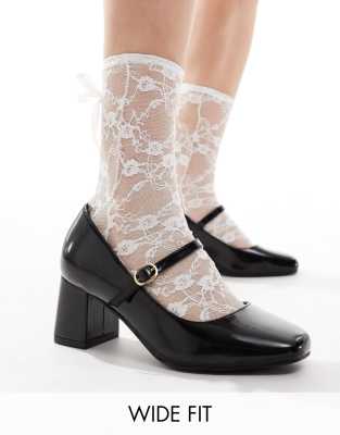 Lizoleor Mary Jane Damen Schuhe - Square Toe Weit Fit Mit Blockabsatz