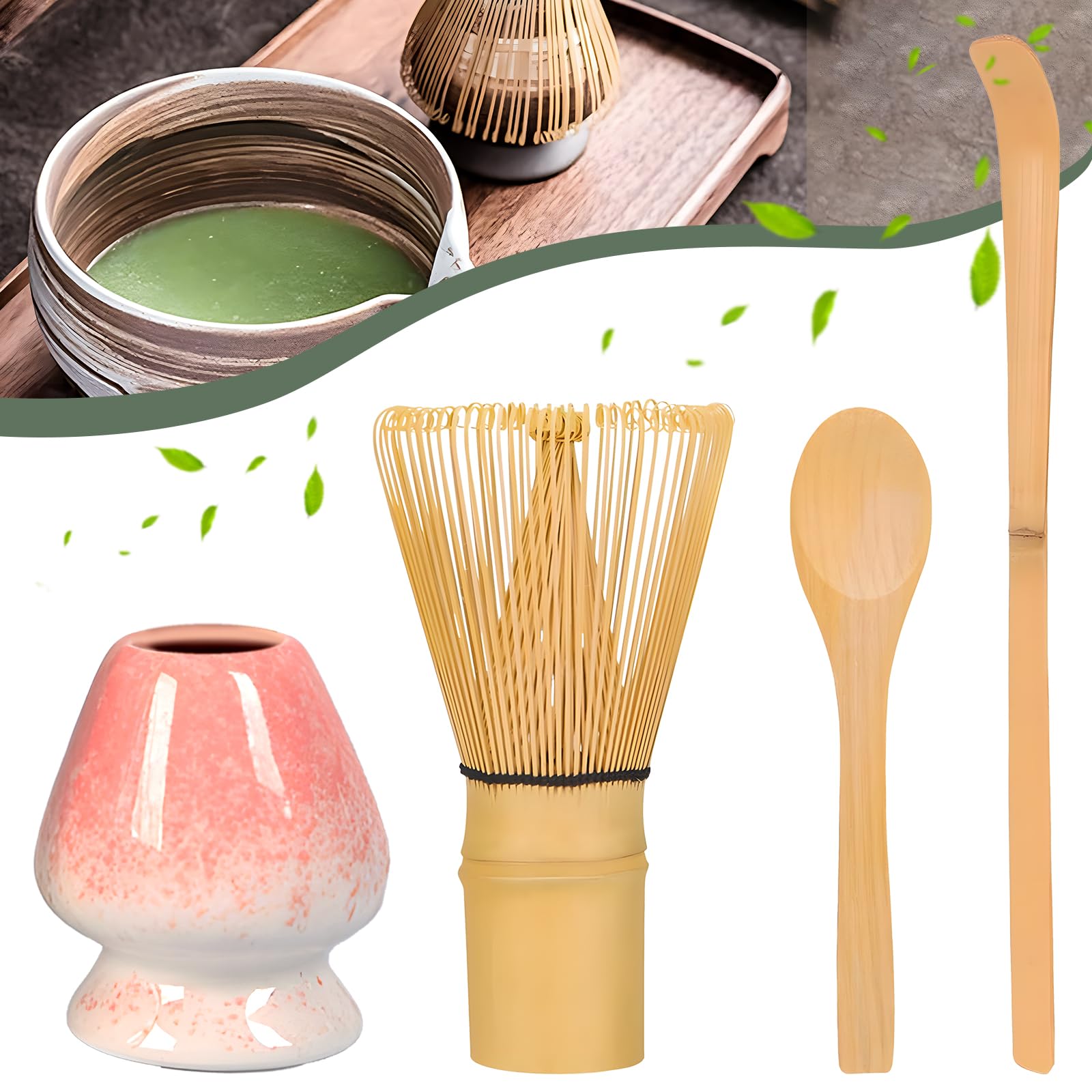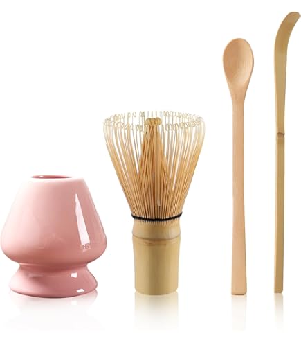 Authentisches Matcha-Set für die japanische Teezeremonie! Enthält alles was du brauchst: Bambus-Matcha-Besen (Whisk), Matcha-Löffel, Löffelhalter, Besenhalter und Sieb. Aus natürlichen Materialien - Keramik und Bambus. Der handgefertigte Bambusbesen erzeugt perfekten Matcha-Schaum. In schöner Verpackung - ideales Geschenk für Teeliebhaber. So genießt du Matcha-Tee wie in einer traditionellen japanischen Zeremonie!