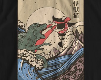 Bist du Fan von japanischer Kultur und Retro-Designs? Dieses Langarmshirt mit dem 'Great Wave Catzilla' Motiv ist absolut einzigartig! Das Design zeigt eine coole Katze, die gegen ein Monster im Stil der berühmten 'Großen Welle' von Kanagawa kämpft - ein perfekter Mix aus traditioneller japanischer Kunst und modernem Manga-Stil. Das Shirt ist klasisch geschnitten und hat doppelt genähte Säume, was für hohe Qualität und Langlebigkeit steht. Perfekt als Geschenk für Katzenliebhaber, Anime-Fans oder einfach für alle, die ausgefallene Designs mögen. Ob zum Casual-Tragen im Alltag, für Cosplay-Events oder als Statement-Piece in deinem Kleiderschrank - dieses Shirt fällt garantiert auf! Der Vaporwave-/Retro-Stil ist total im Trend und das Motiv sorgt garantiert für Gesprächsstoff. Hergestellt aus weichem, bequemem Material, das sich angenehm tragen lässt. Ein Must-Have für alle, die japanische Popkultur lieben und ihren Style mit einem besonderen Piece aufpeppen wollen!