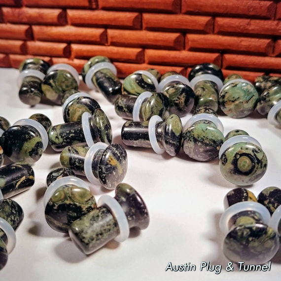 Green Eye Jaspis Stecker - Doppelflared Stein Plug Für Gedehnte Ohrläppchen