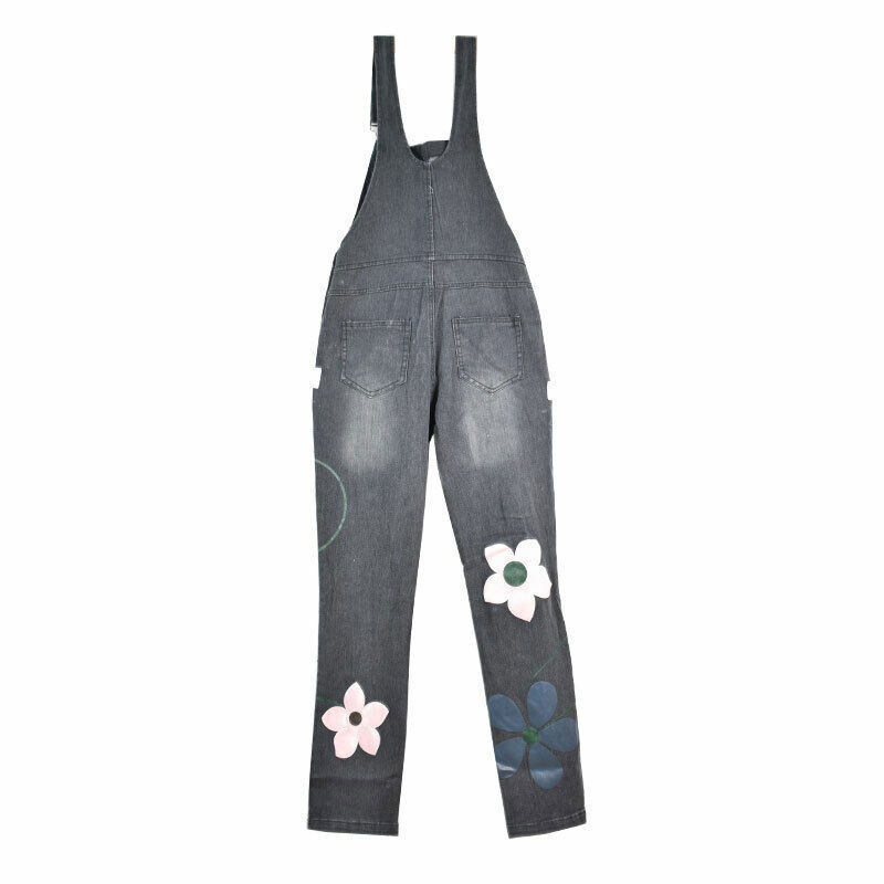 Damen Latzhose Jeans Mit Blumen - Stretch Overall Sommer Boho Style