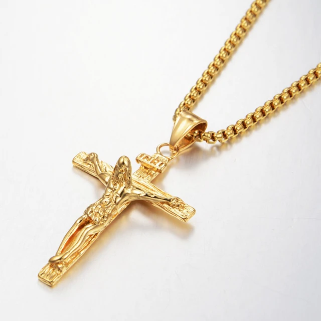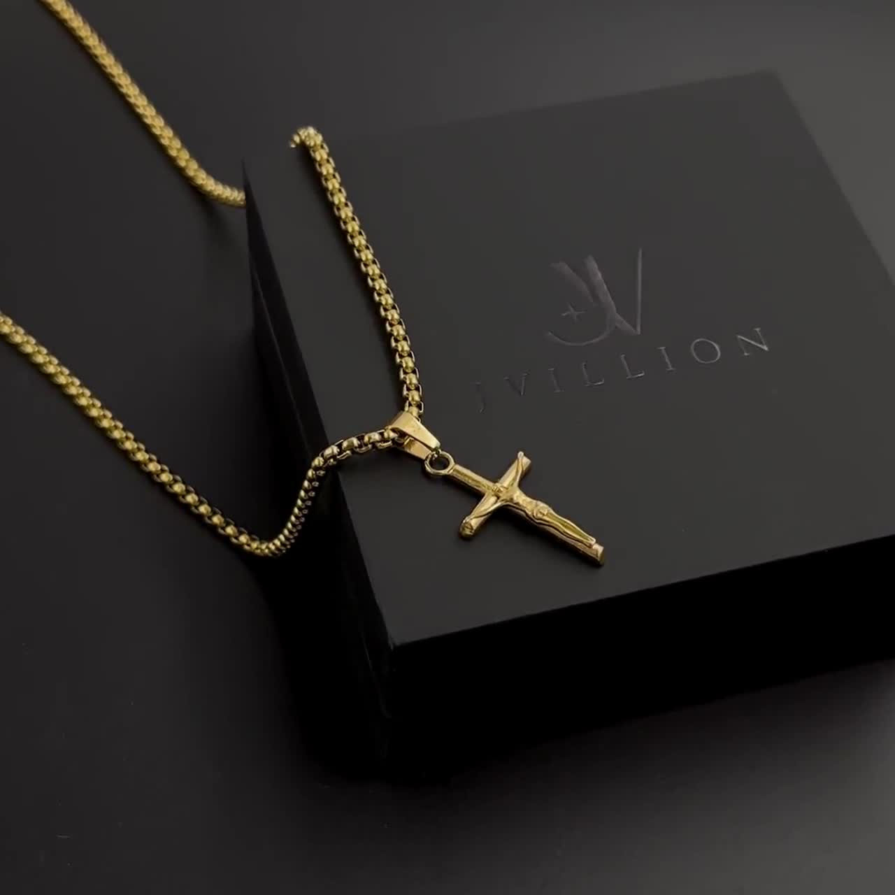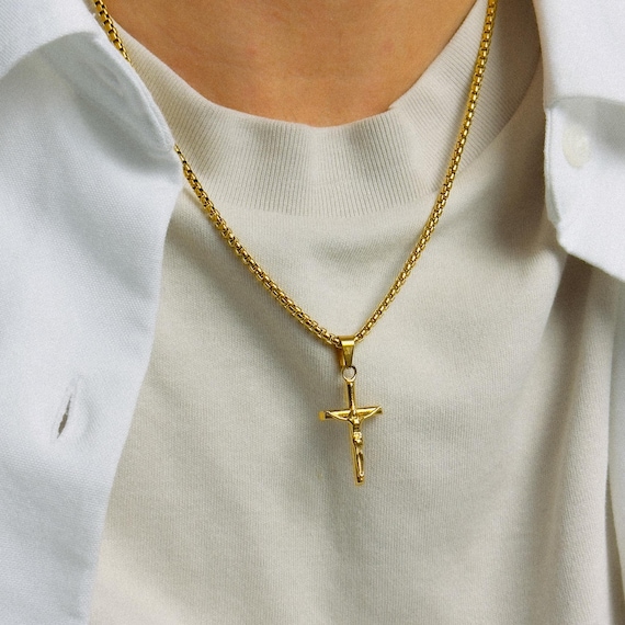 Kreuz Kette Gold Edelstahl - Jesus Christus Halskette Für Taufe Geschenk Herren & Damen