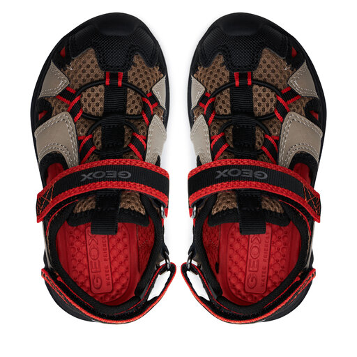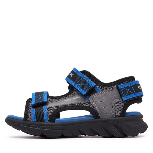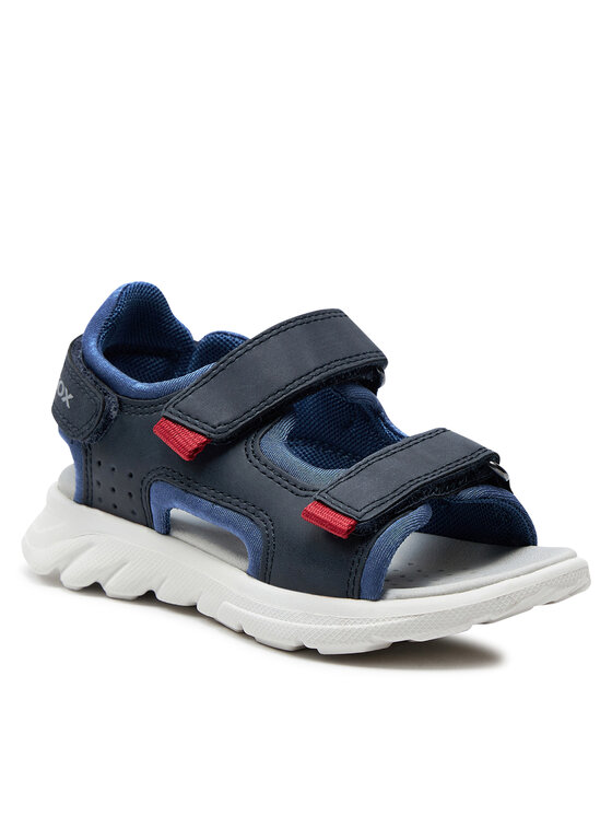 Suchst du praktische Sandalen für deinen Jungen? Die Geox J Airadyum BO Sandalen sind genau das Richtige! Aus weichem Leder gefertigt, das sich angenehm an den Fuß anpasst. Das Innenfutter aus Synthetik sorgt für zusätzlichen Komfort. Der praktische Klettverschluss macht das An- und Ausziehen super einfach - ideal für ungeduldige Kinderhände! Die Gummisohle bietet guten Grip und ist langlebig. Das besondere Geox-System sorgt für Atmungsaktivität, sodass kleine Füße nicht so schnell schwitzen. Perfekt für den Kindergarten, Spielplatz oder Urlaub. Dein Junge wird sich in diesen bequemen Sandalen wohlfühlen und gut damit herumtoben können. Einfach anziehen, Klettverschluss zuziehen und los geht's!