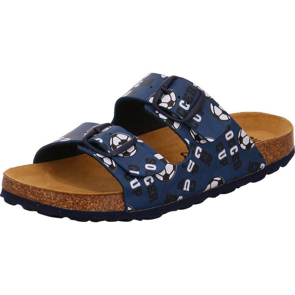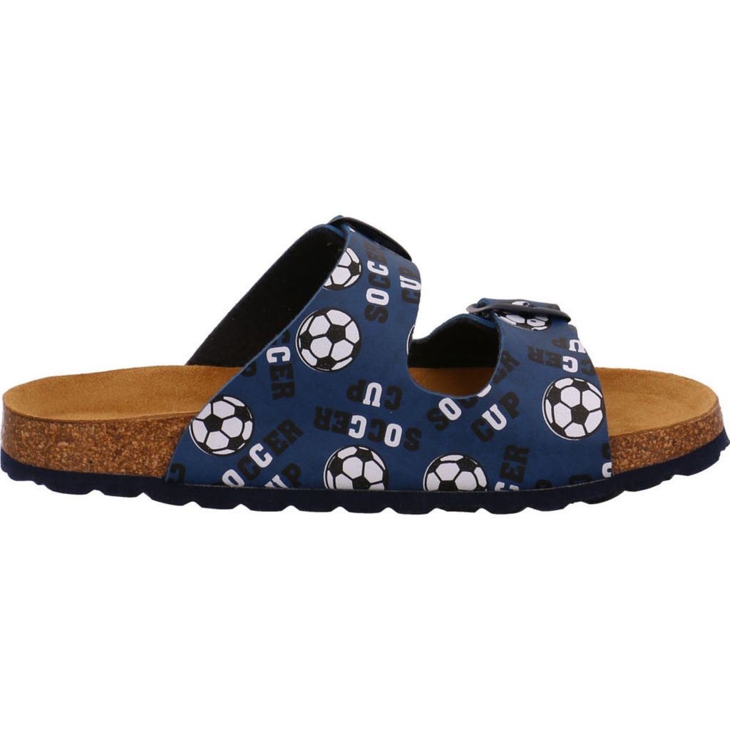 Softrelax Jungen Pantoletten - Lederfußbett Mit Skate Motiven Blau