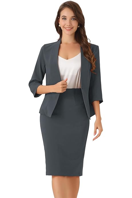 Hallo Business-Ladies! Dieses elegante Tweed-Set von Allegra K ist perfekt für den Office-Look! Der Blazer mit 3/4-Ärmeln und Knopfverschluss kombiniert mit dem taillierten Bleistiftrock ergibt ein professionelles Gesamtbild. Perfekt für Meetings, Präsentationen oder Business-Events. Das Tweed-Material sieht nicht nur hochwertig aus, sondern ist auch langlebig. In verschiedenen Größen von XS bis XL erhältlich. Kombiniere das Set mit High Heels oder Stiefeln für den perfekten Business-Chic. Einfach ein zeitloses Outfit, das in keiner Business-Garderobe fehlen sollte!