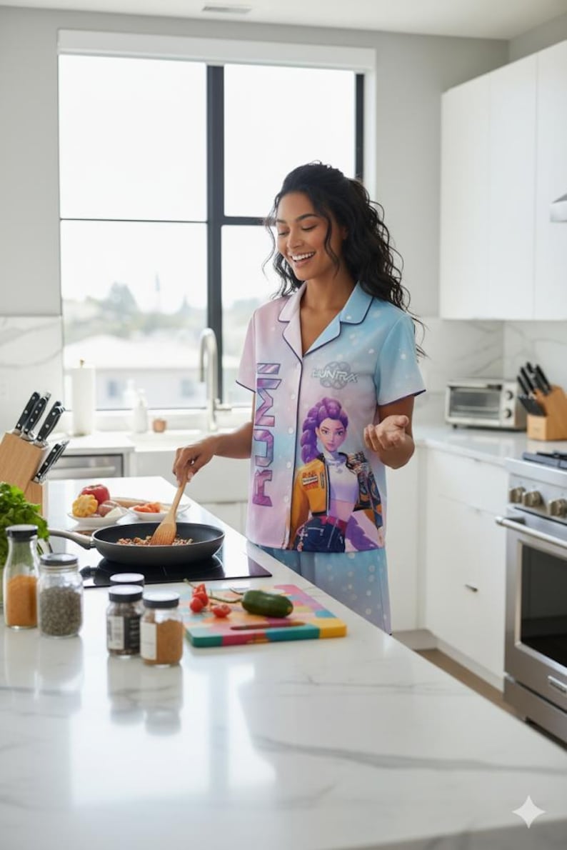 Hey ihr K-Pop Fans! Dieser mega coole Demon Hunter Pyjama ist perfekt für alle Mädchen, die Anime lieben. Das zweiteilige Set besteht aus einem Langarm-Oberteil und einer Pyjamahose - super bequem und weich auf der Haut. Verfügbar in Größen von 100 (2-3 Jahre) bis 160 (13-14 Jahre) - einfach die Größentabelle checken! Perfekt für Pyjama-Partys, als Lounge-Wear für zu Hause oder für besondere Anlässe wie Weihnachten und Halloween. Mit den leuchtenden Farben und coolen Designs fühlt sich deine Tochter wie ein echter Bühnenstar. Übrigens: Das macht sich auch super als Geschenk für Geburtstage oder andere Feiern! Die kleinen Mädels werden total ausflippen, wenn sie diesen stylischen Anime-Pyjama auspacken.